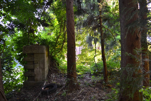橋の東側の接岸部分まで行ってみると、ただの雑木林である。