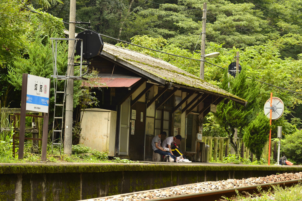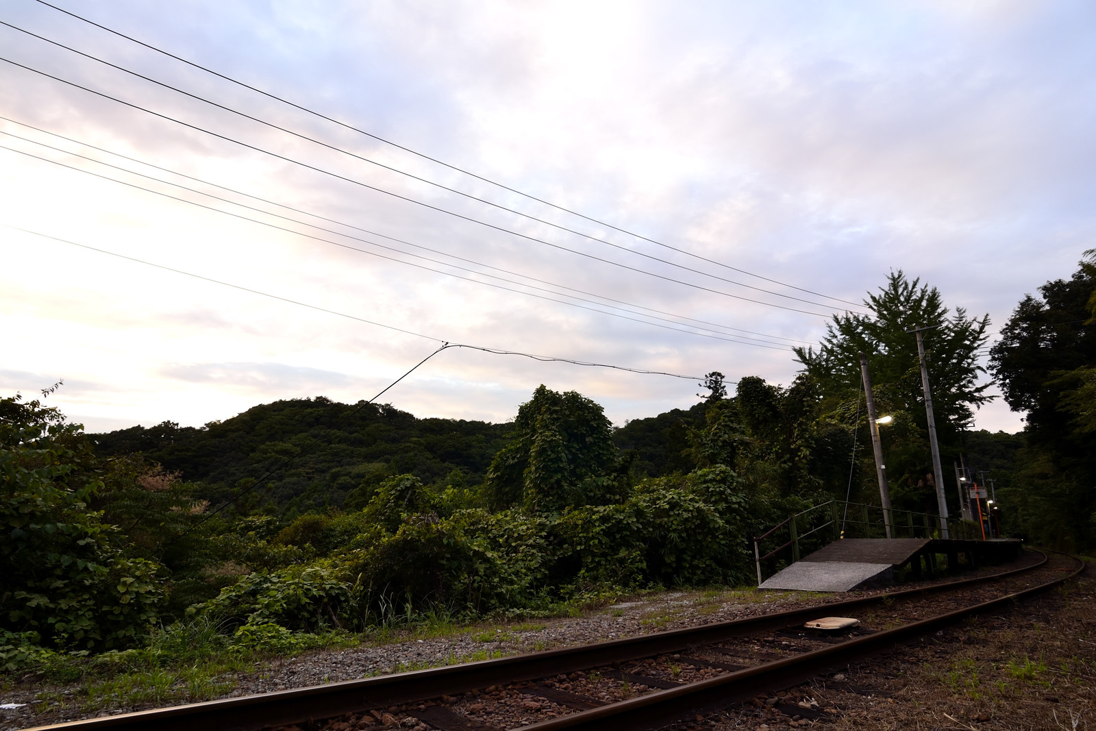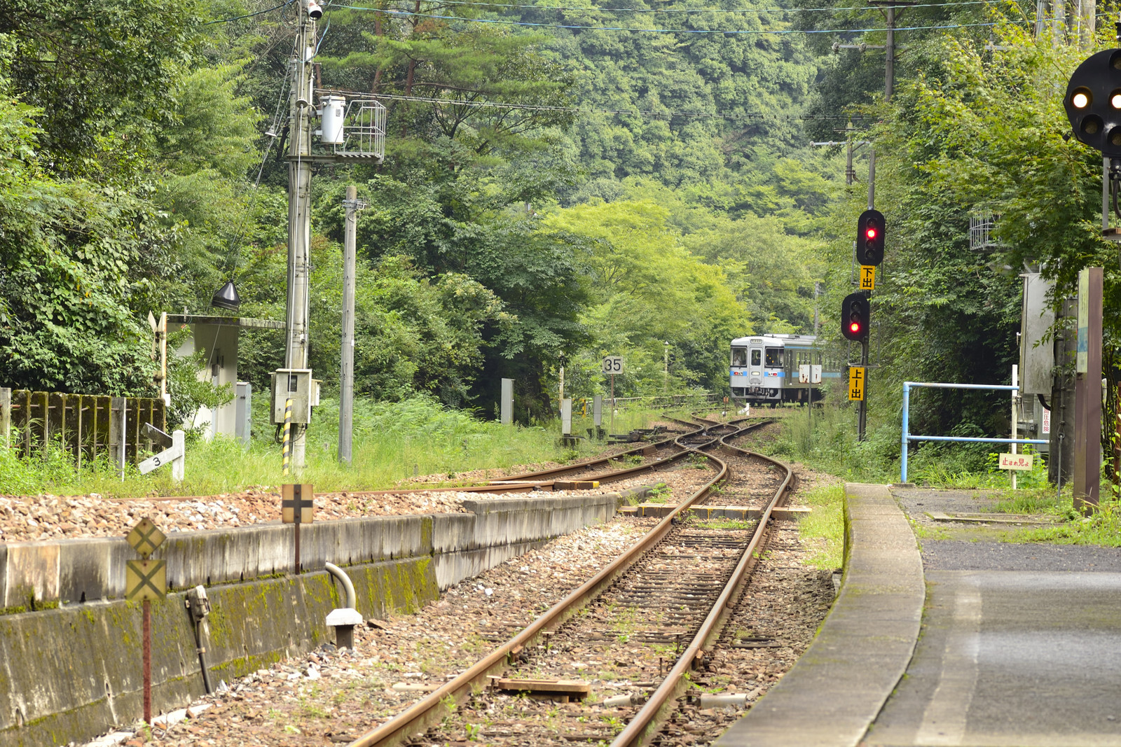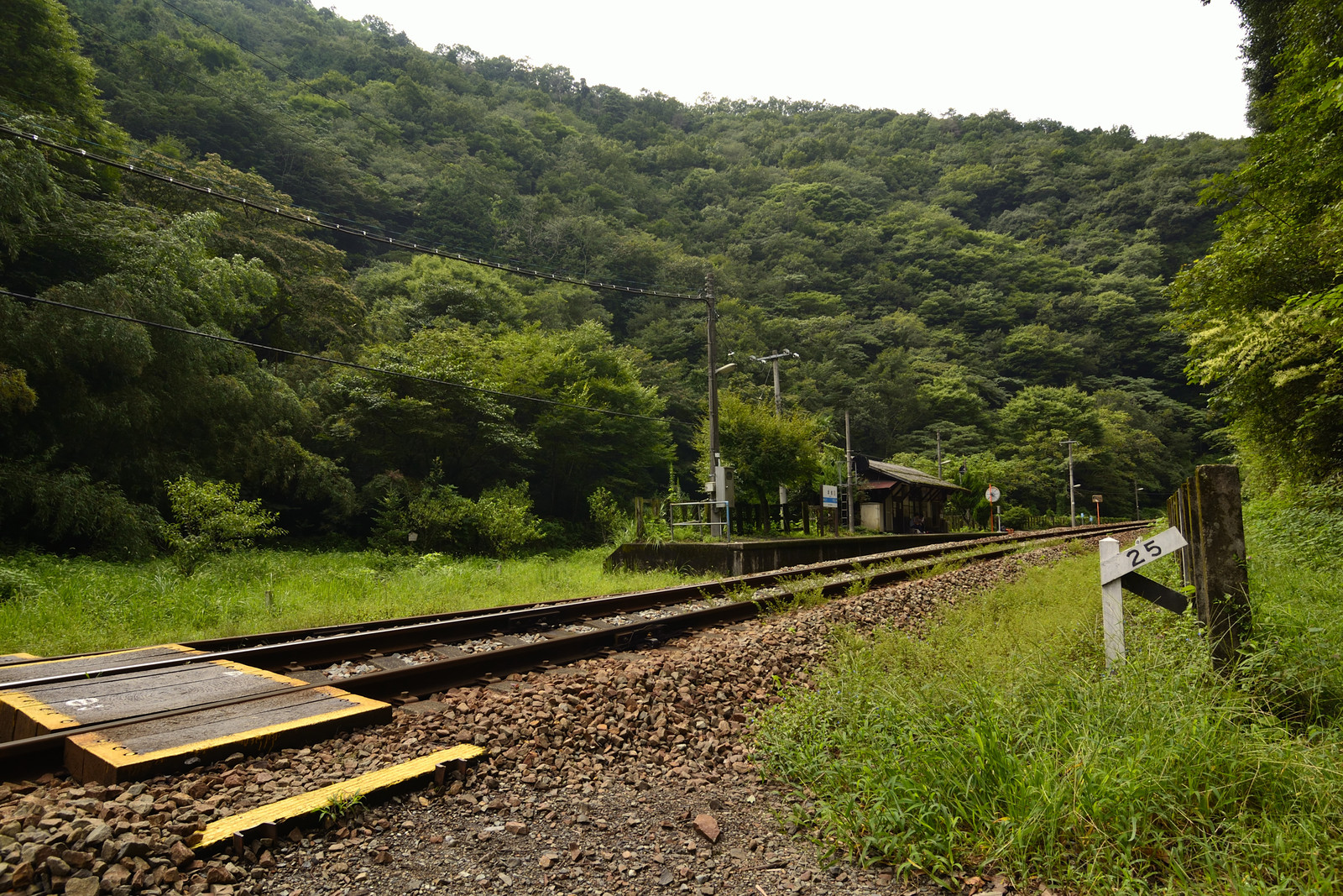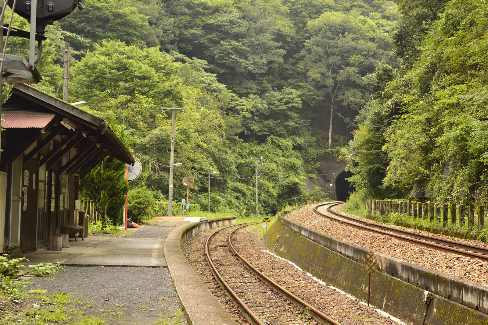 湾曲するレールに、そっぽを向かれた様な駅であった。四方を山に囲まれた駅というと、大井川鉄道の尾盛駅・室蘭本線の小幌駅(一方は海だが)くらいであろうか。