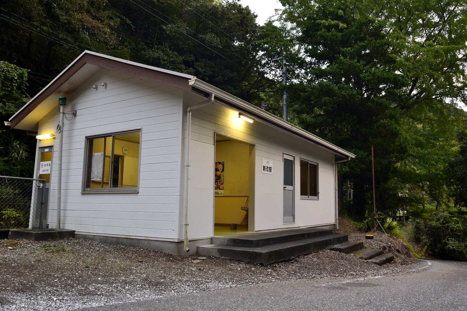 こちらもスイッチバック駅。ただ坪尻と違いやたらと素っ気ない駅舎が待っていた。