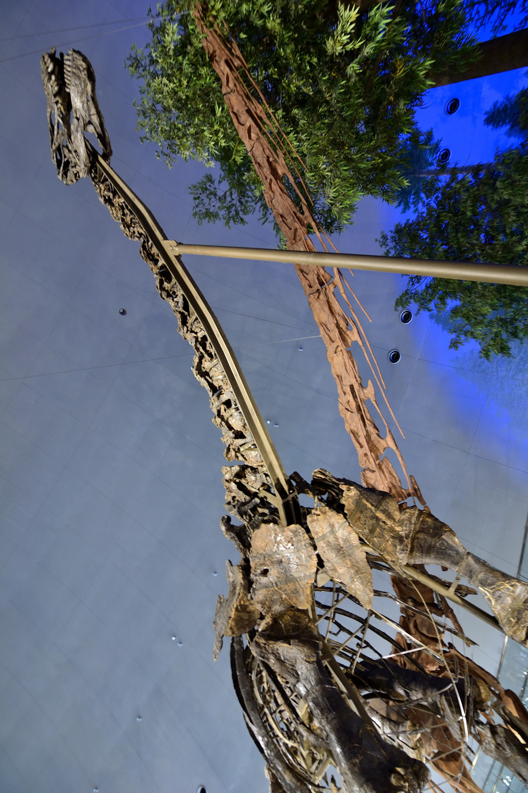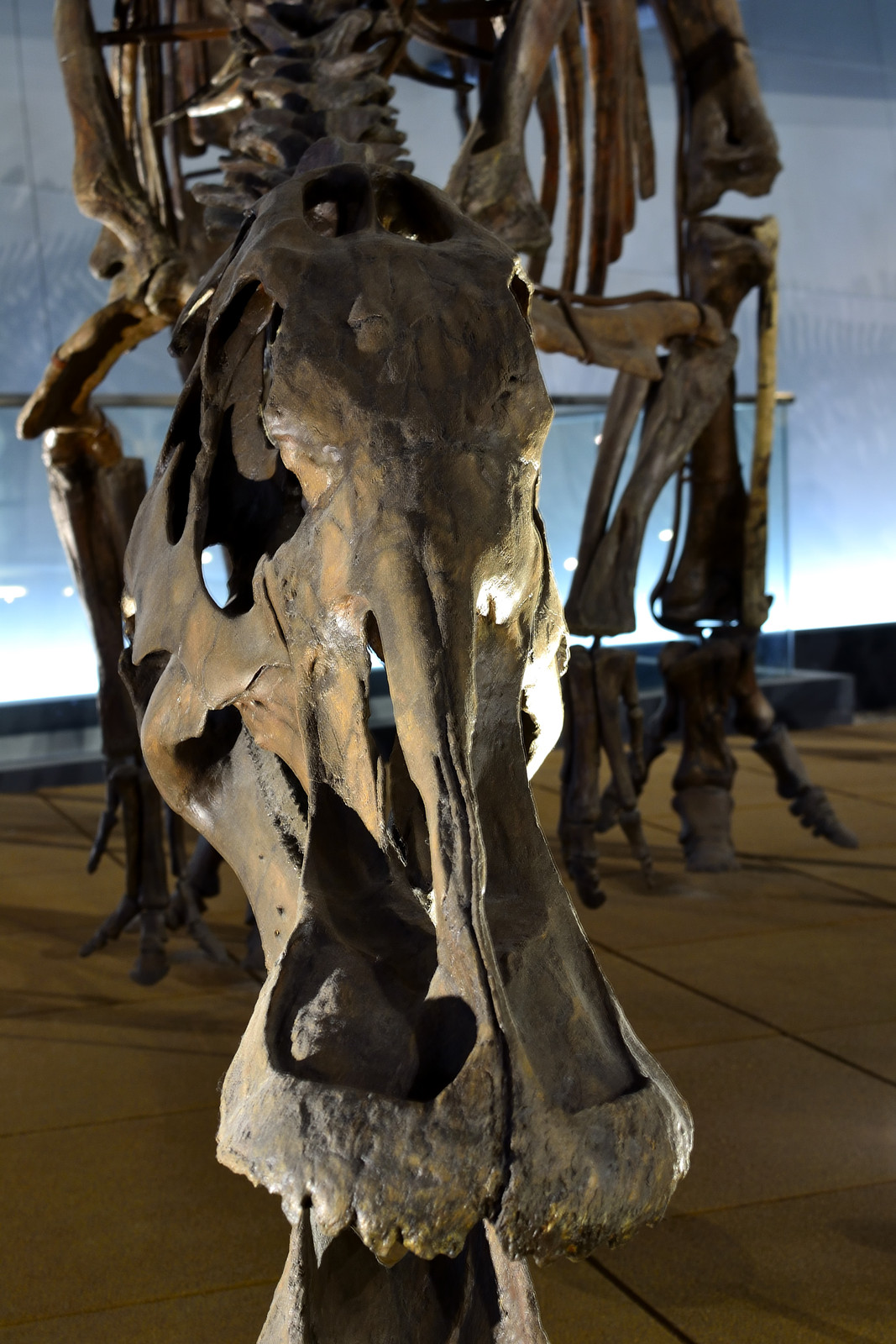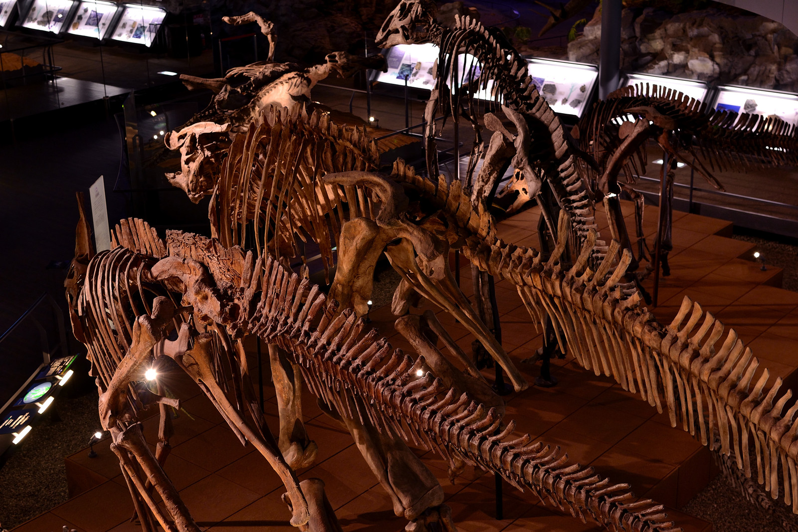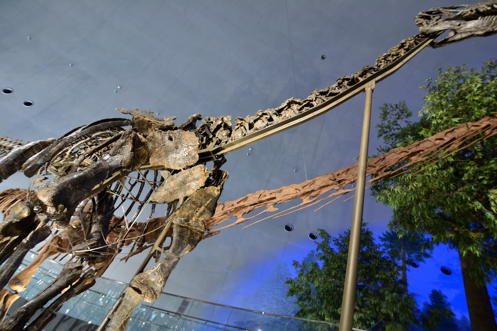 カマラサウルス・・この全身骨格はほとんどすべて実物の骨化石を使用しており、そのため変形の激しい腰の骨は大腿骨とずれているそう。体長は15m。