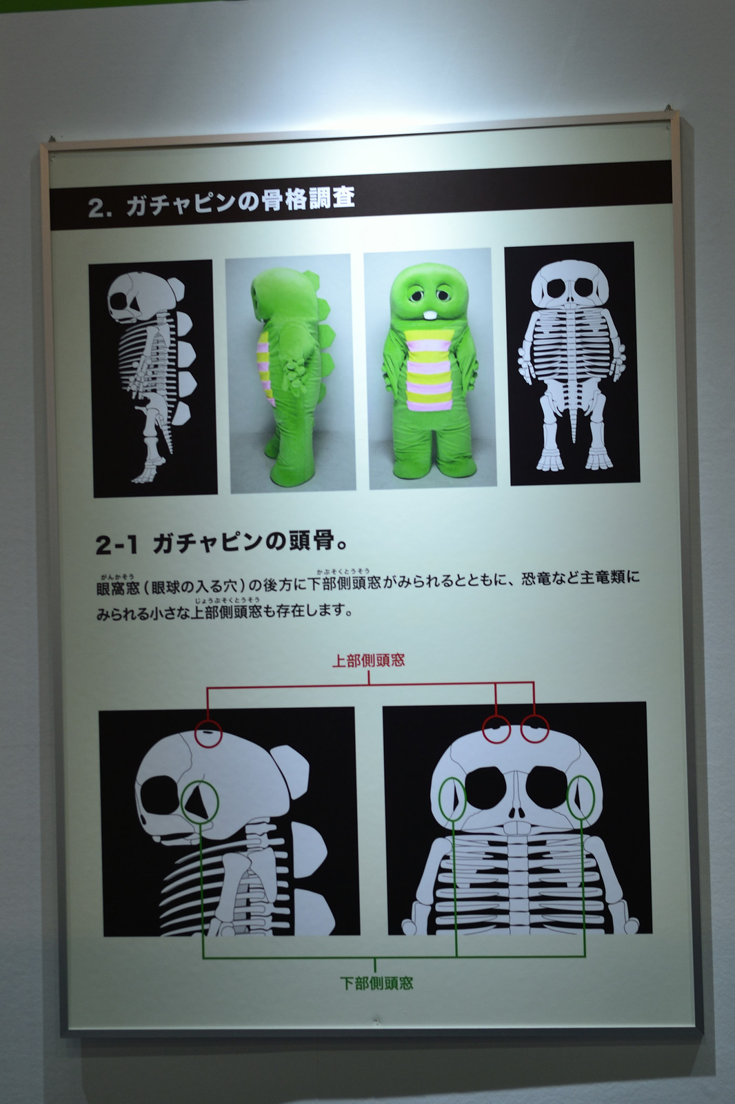 「ガチャピンのルーツが明らかに」も展示しておりました。ガチャピンは恐竜の子孫であったと。