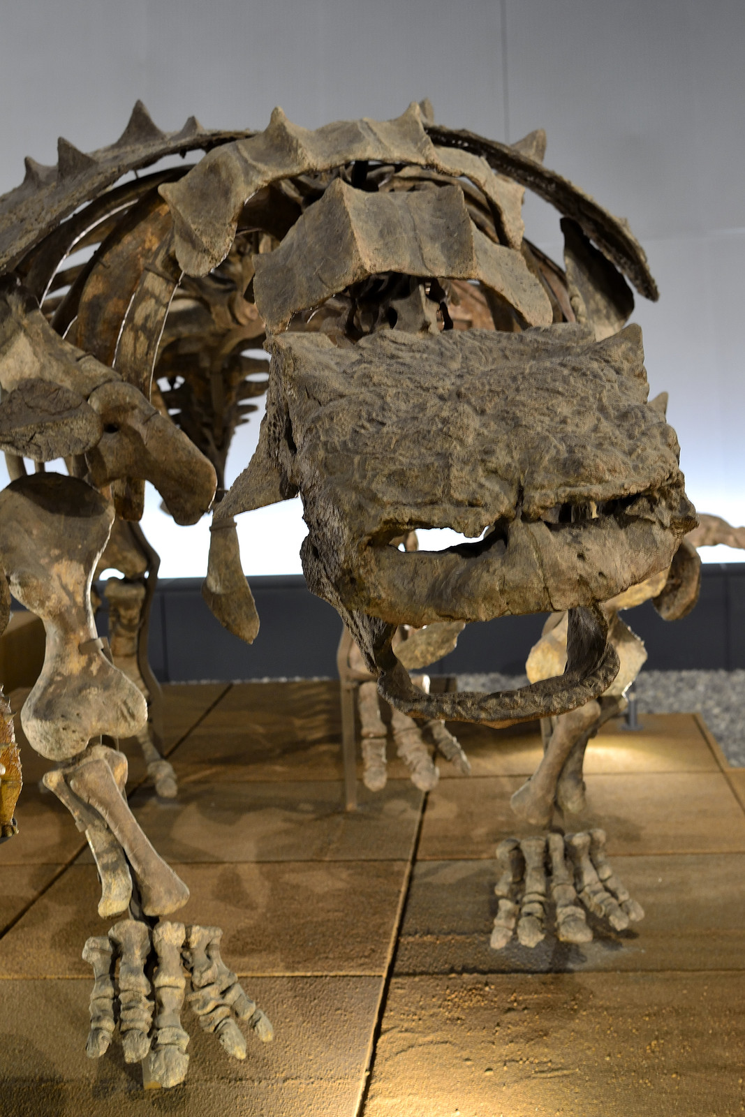 格闘技やらせたら強そうな骨格ですね。関節技は効きそうにない。チョークスリーパーには首が太すぎるし、手足は短いし。かといってこれだけ骨太だと打撃も効きそうにありません。垂直方向の首へのダメージしかないかも知れない。鈴木みのるのゴッチ式パイルドライバーが有効か。