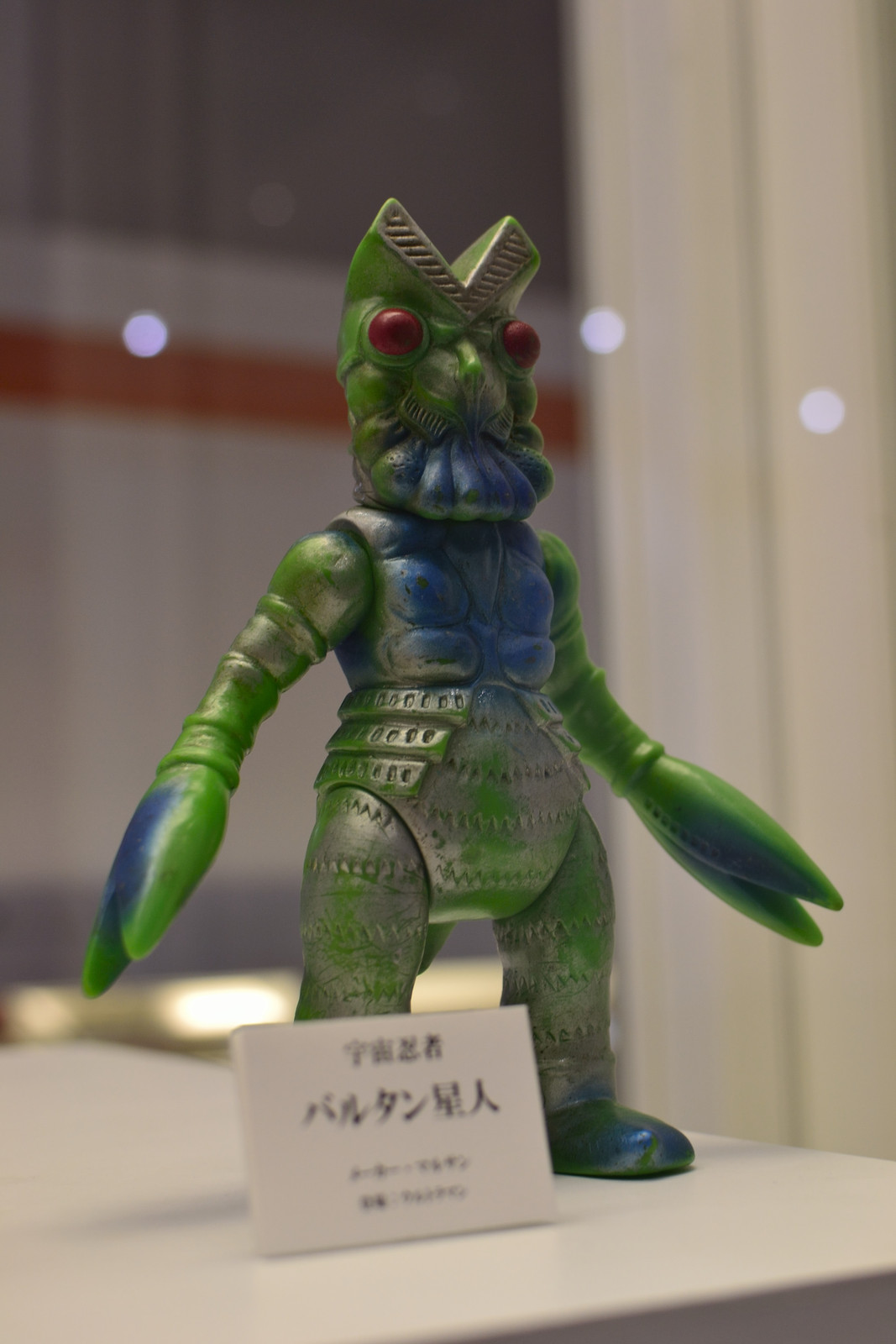 右 おなじみのバルタン星人・・別名「宇宙忍者」 マッハ5で飛行するほか、瞬間移動能力も有し分身するかのように移動できる。眼は5,000個の眼細胞からできており、1万メートル先の小さな物体も視認可能である。