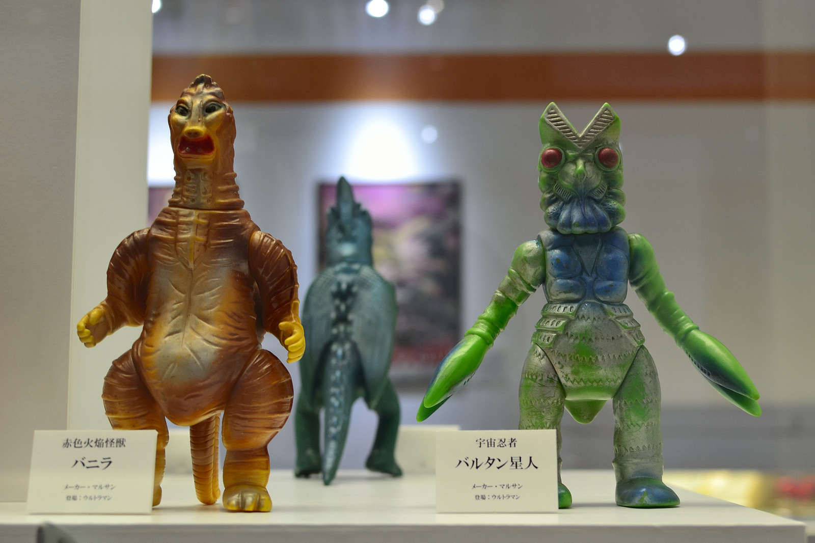 左 バニラ・・別名「赤色火焔怪獣」 3億5000年前の超古代文明では「赤い悪魔」と恐れられ、液状化されてカプセルに閉じこめられていた赤い古代怪獣。武器は口から吐く強力な火炎。