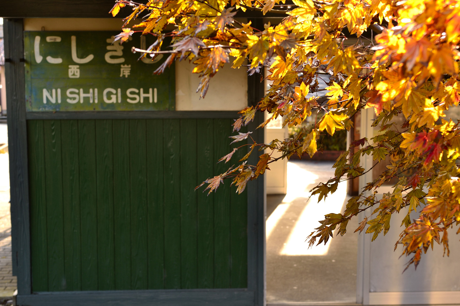 こちらが本来の西岸駅 駅舎の駅名標が渋い。