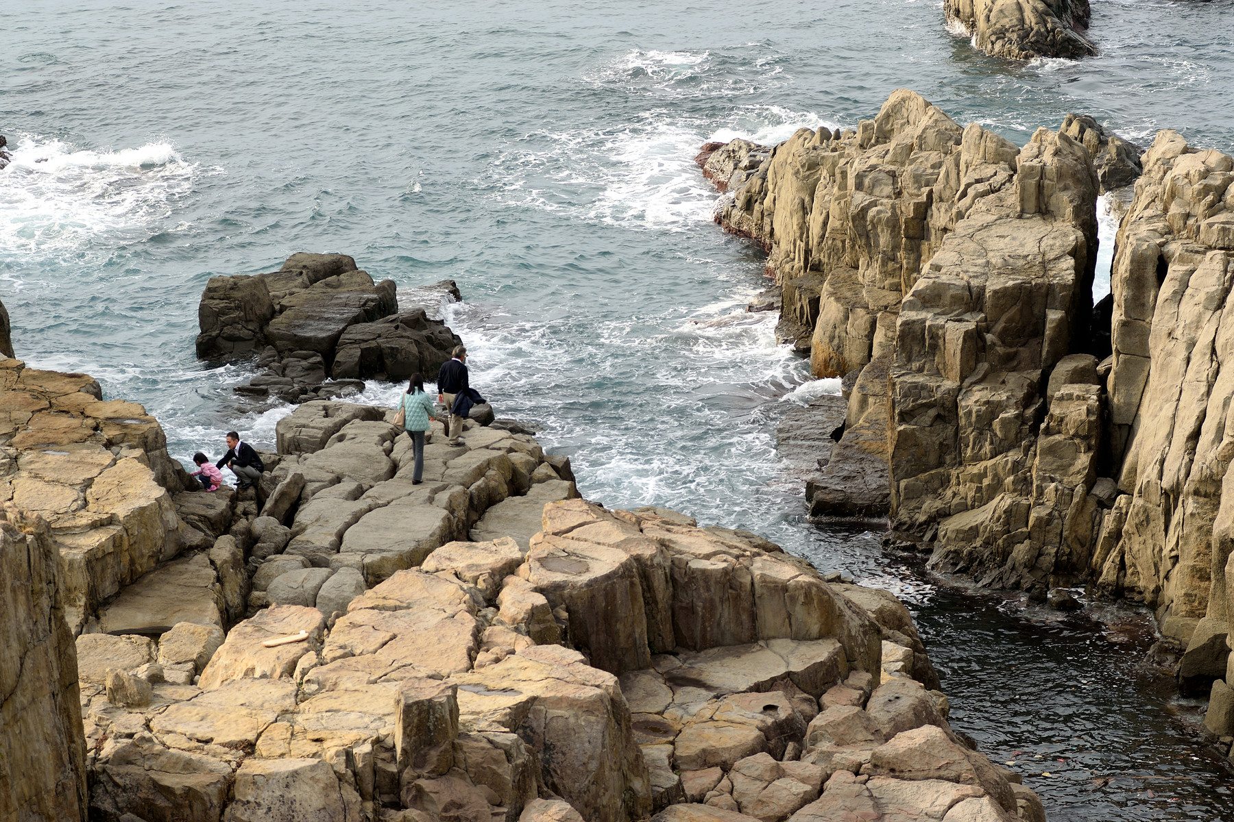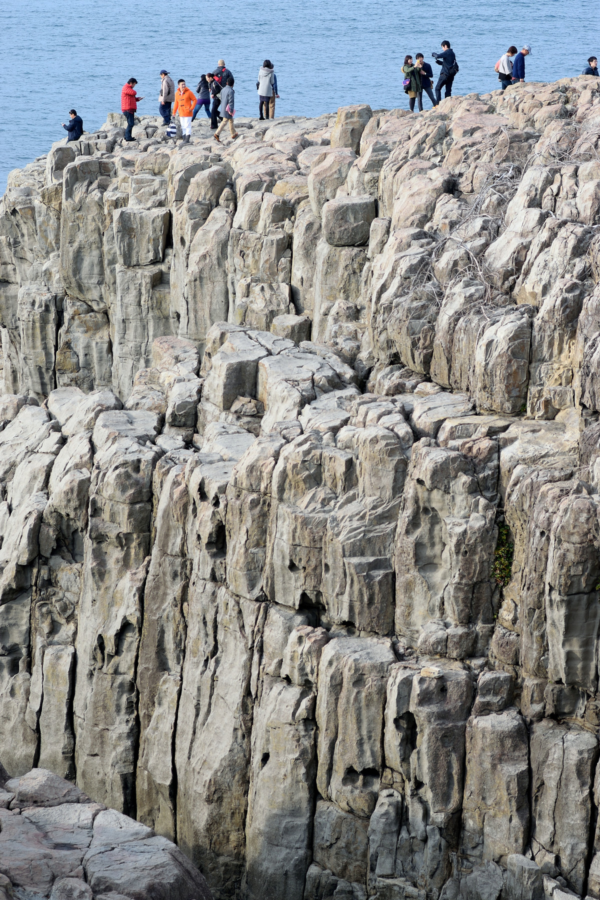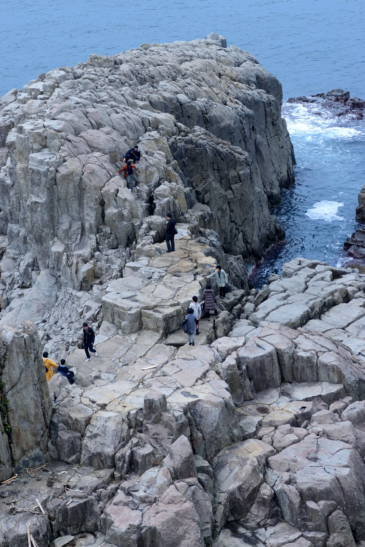 東尋坊に着いたのは14時くらい。腹が減っていたので海鮮丼でも食べようかと思ったが、1500円以上という典型的な観光地の値段設定のため500円のイカ焼きにしました。