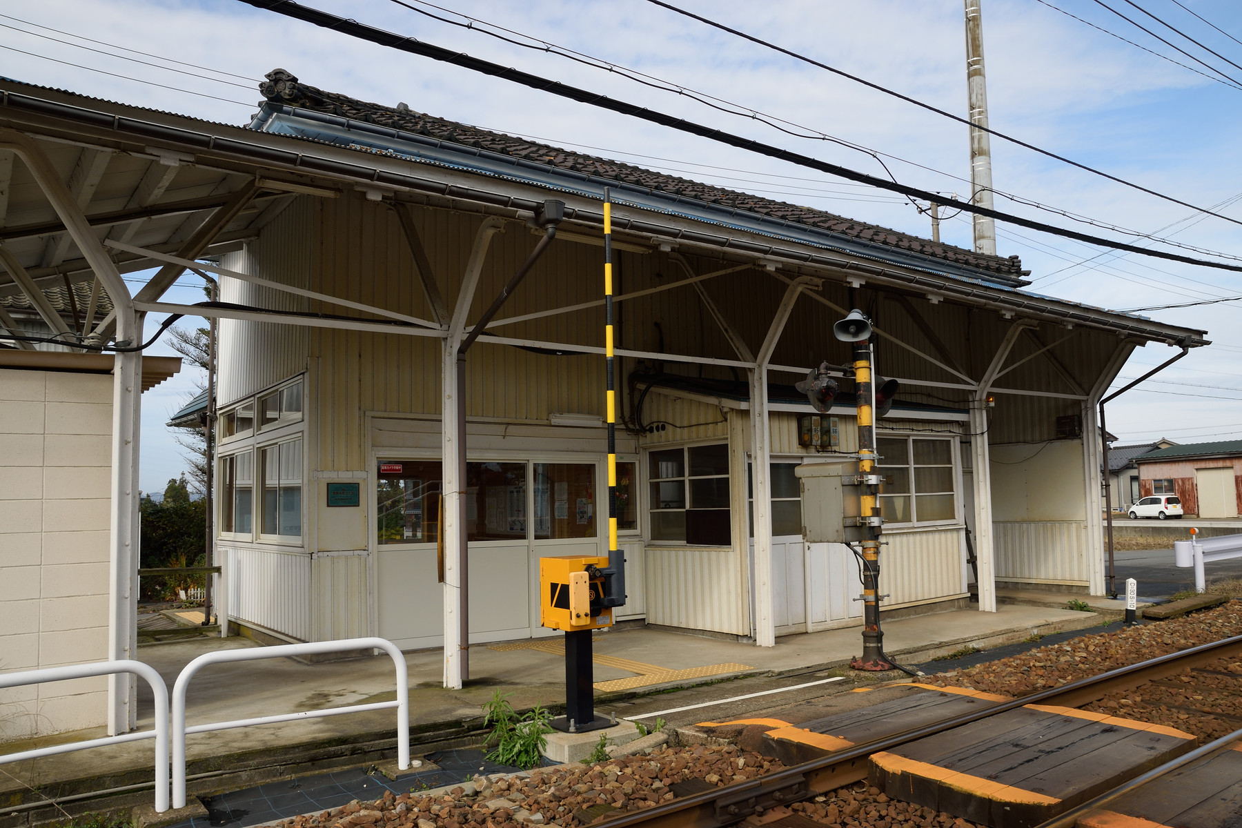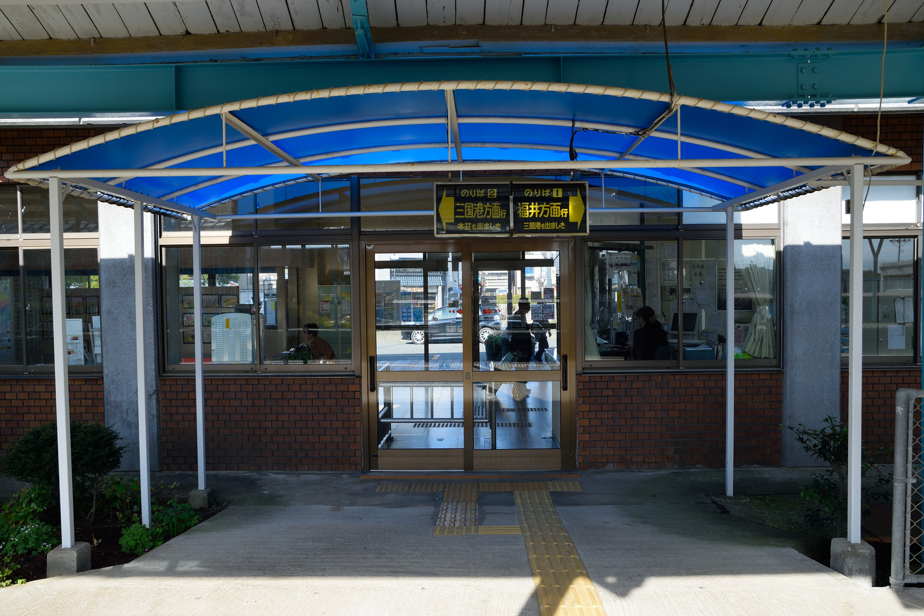 ひさしと言えばよいのか、それが随分と大きく張り出しています。次はあわら湯のまち駅に向かいます。