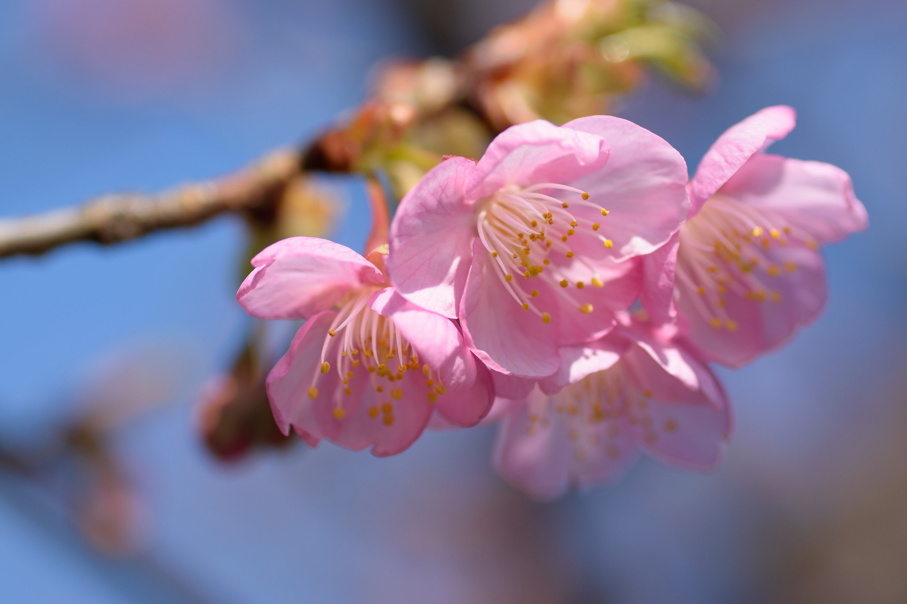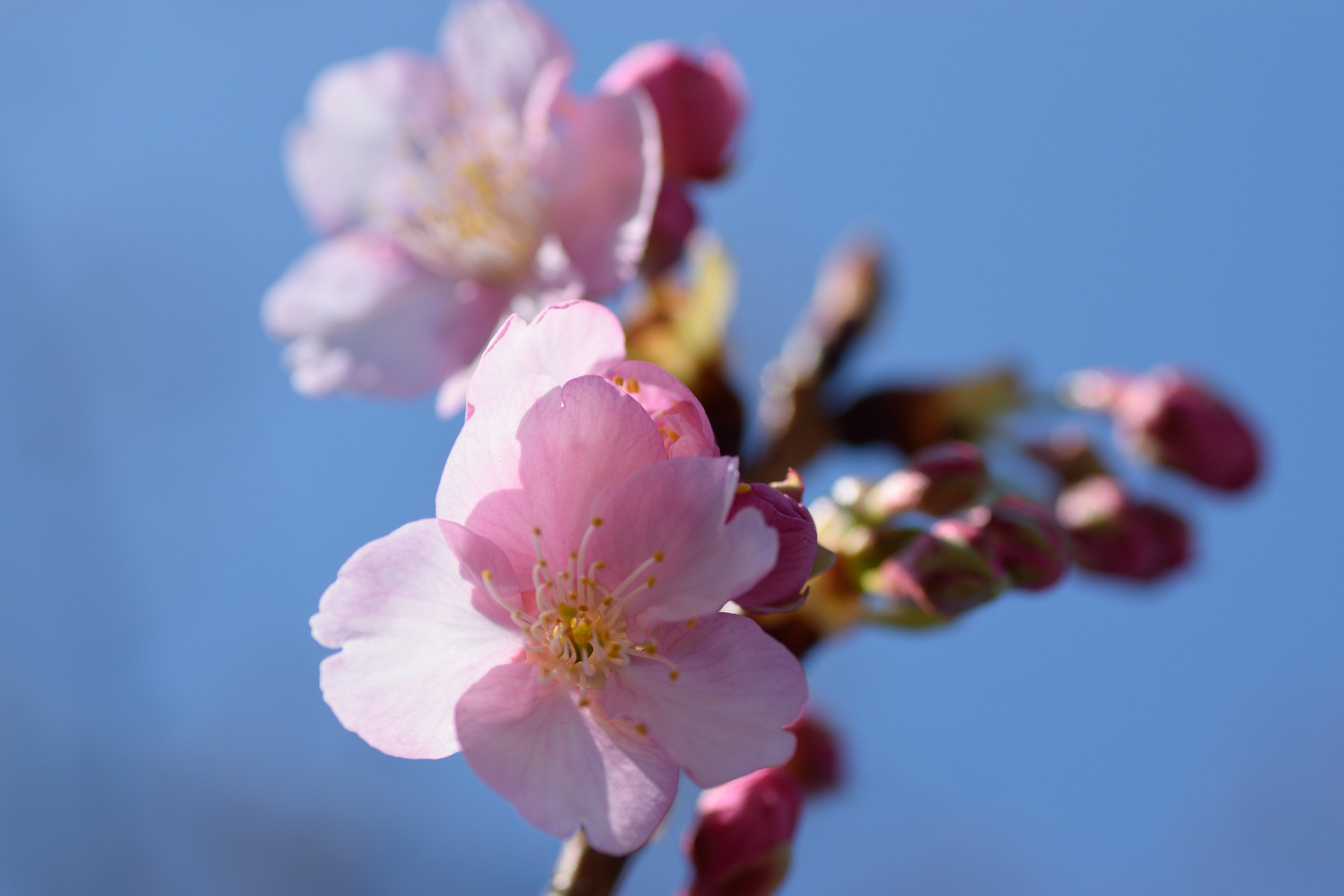 ソメイヨシノよりもかなり深いピンク色をしています。