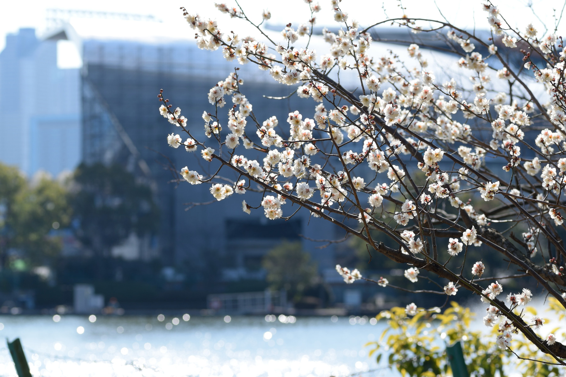 等々力緑地の梅林と多摩川の河津桜(2017年2月)