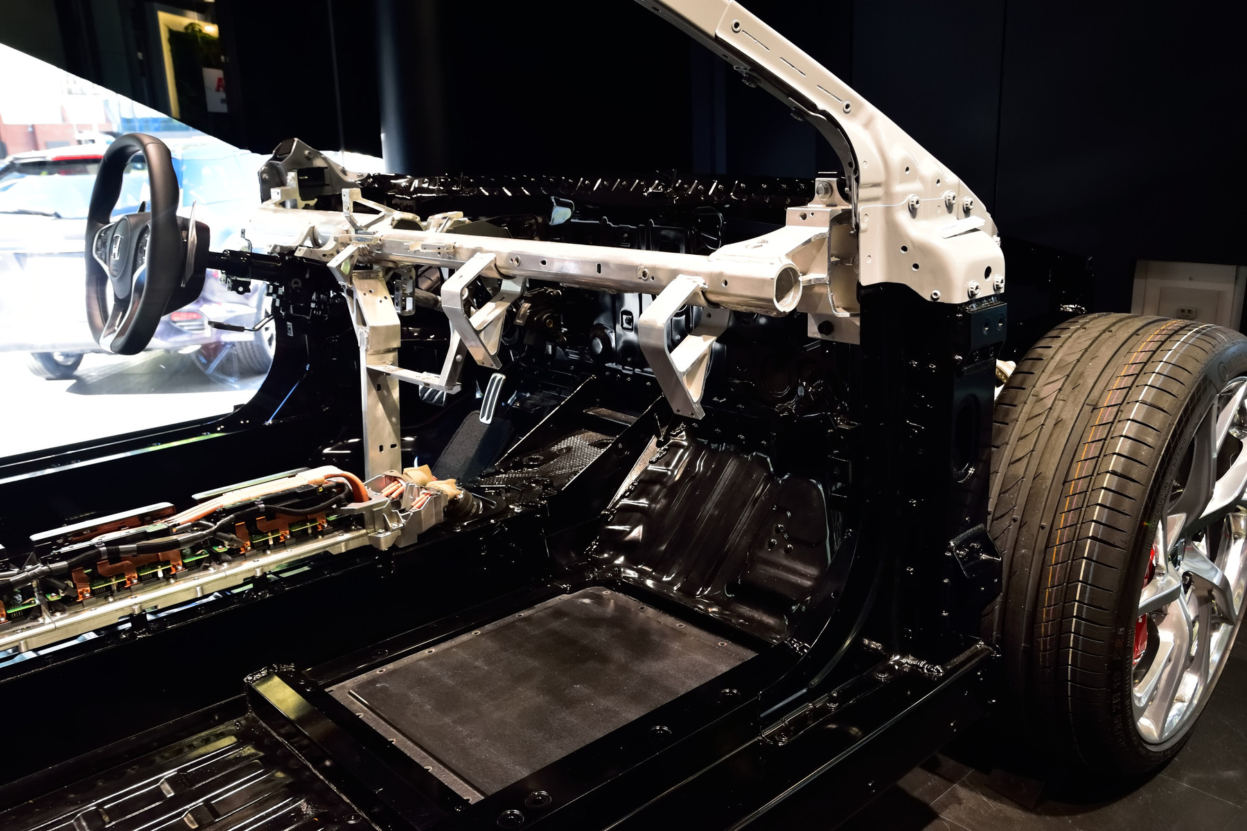 カットボディの展示もありました。背中の後ろは何やら電子部品だらけです。