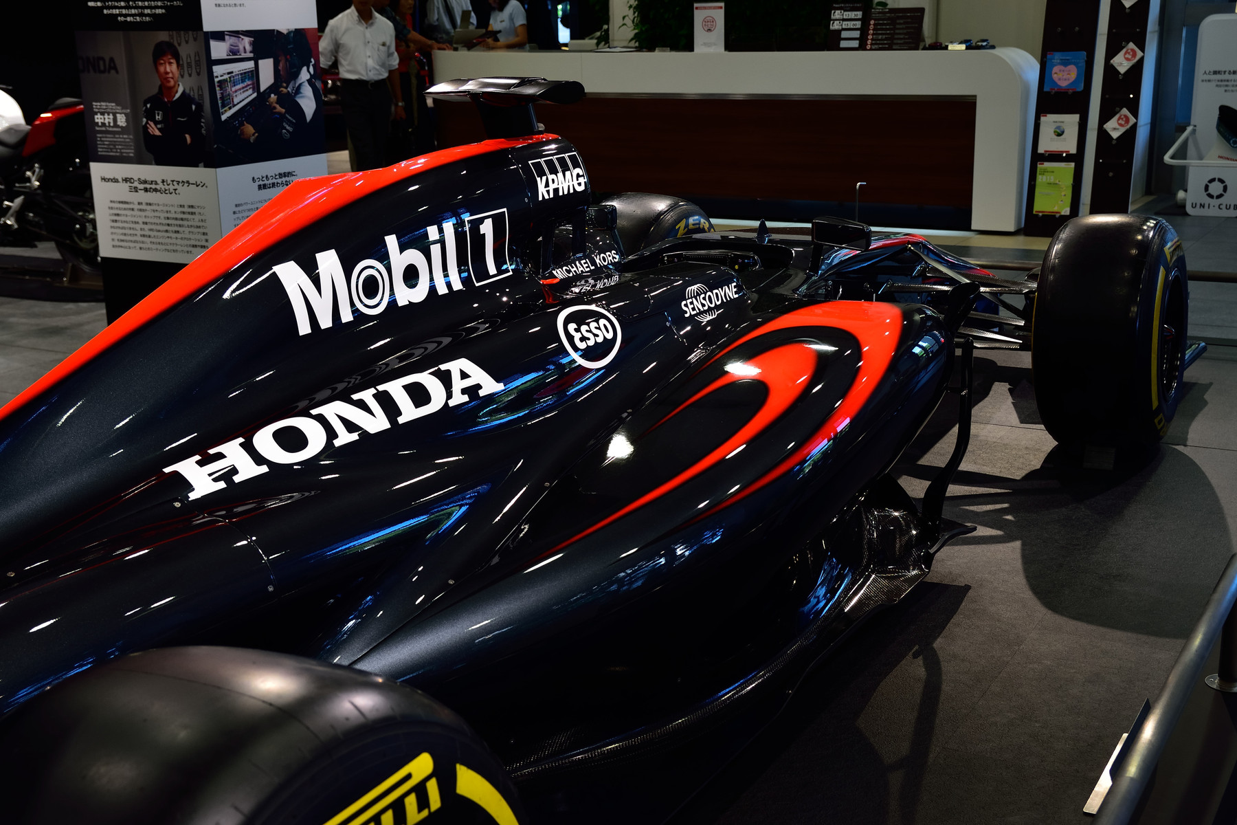マクラーレンホンダ2015年マシンのMP4/30(ロングノーズ)の展示もありました。ですが正直これを見ても何とも思いません。