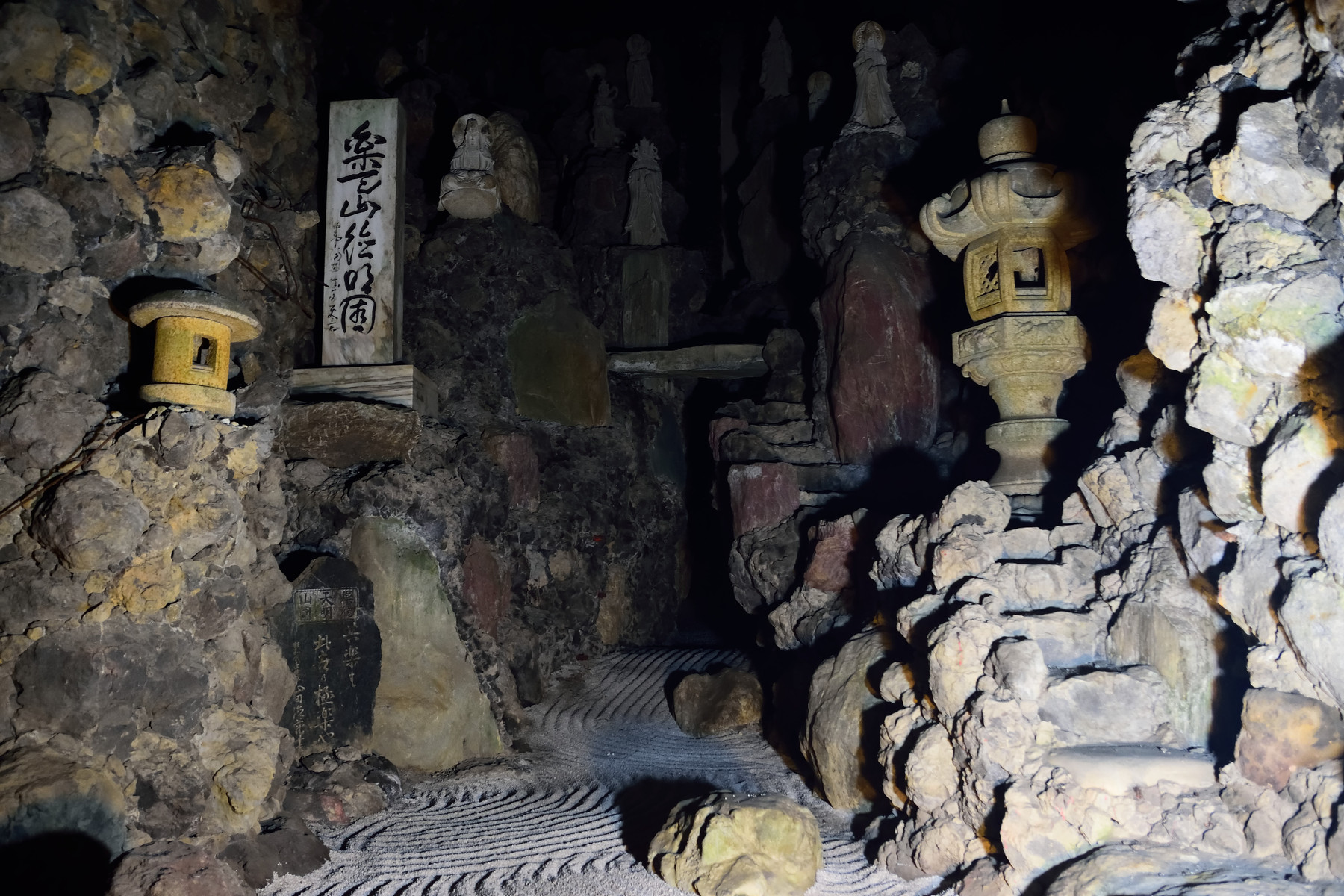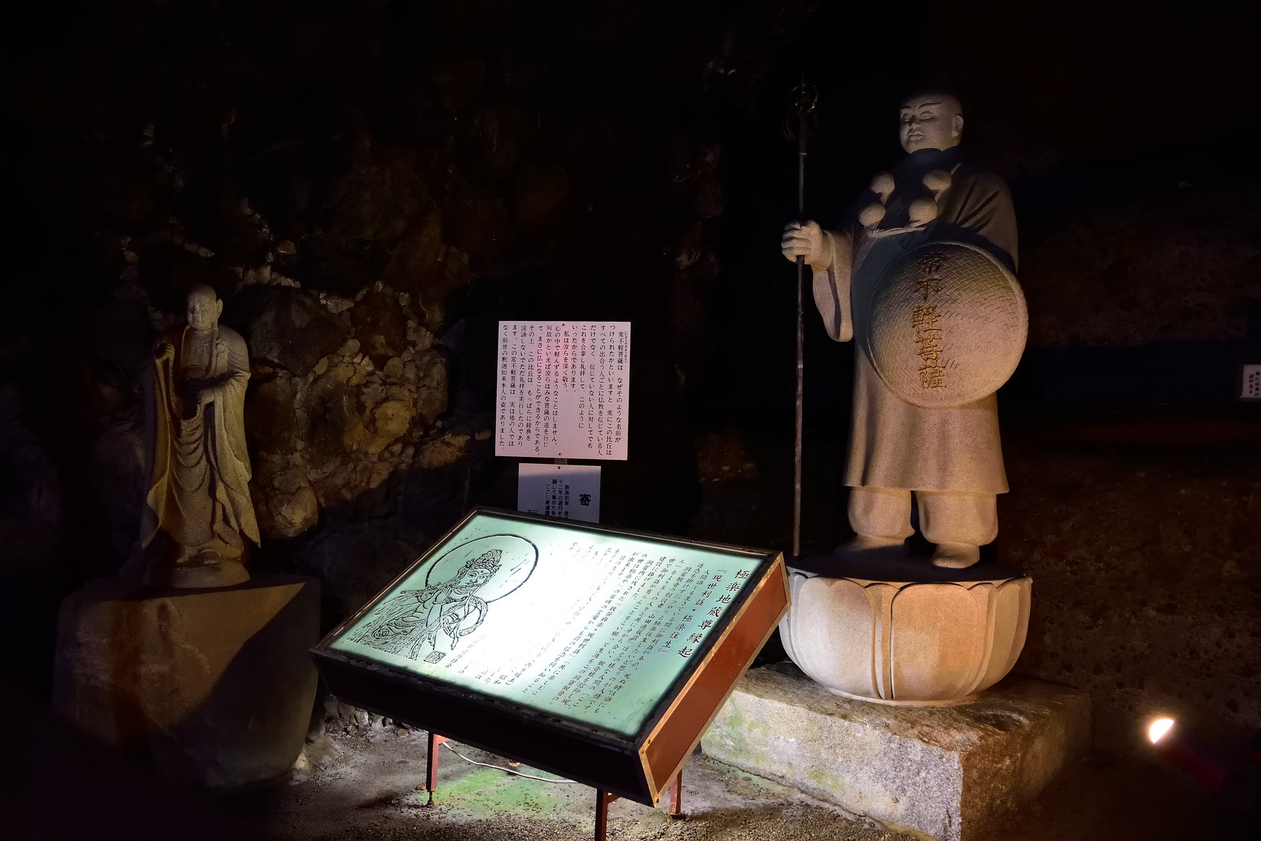 最後の方になると大がかりな背景で特別扱いされた石仏が現れます。人が居なくなると、地下空間を訪問すると感じる事のできる静寂に包まれます。