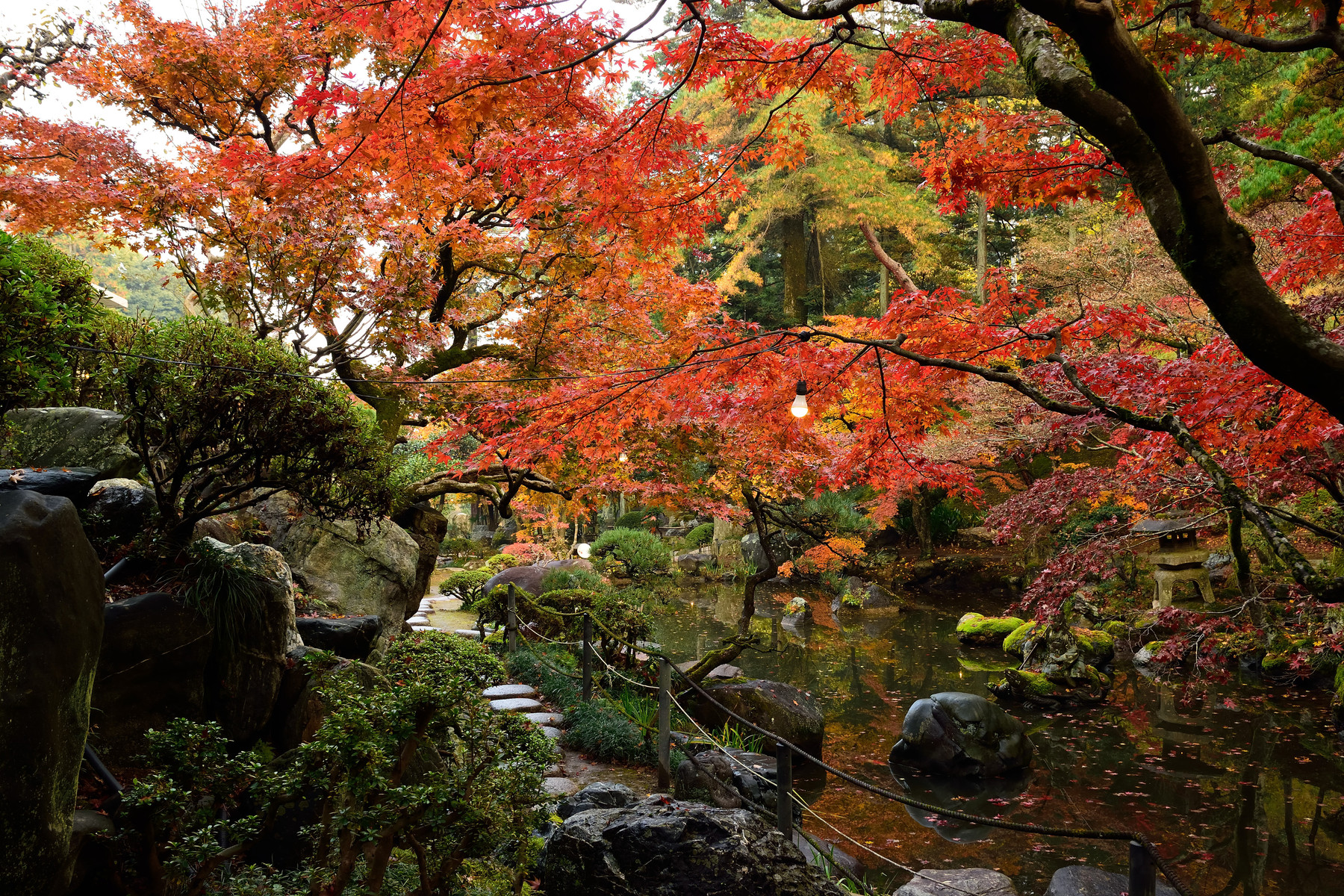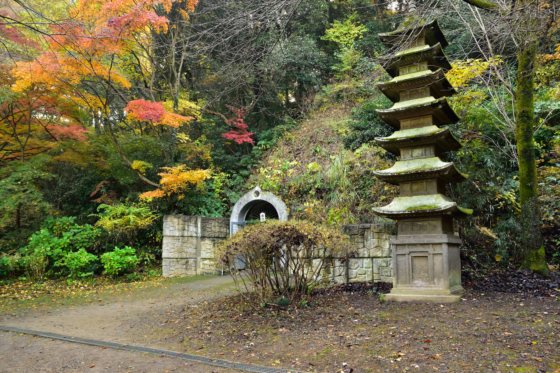 洞窟観音と徳明園の紅葉。