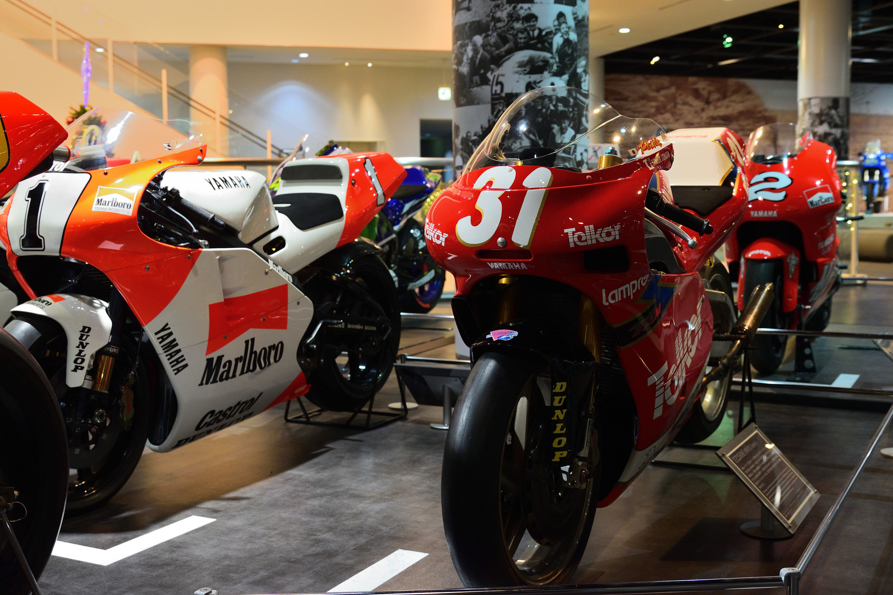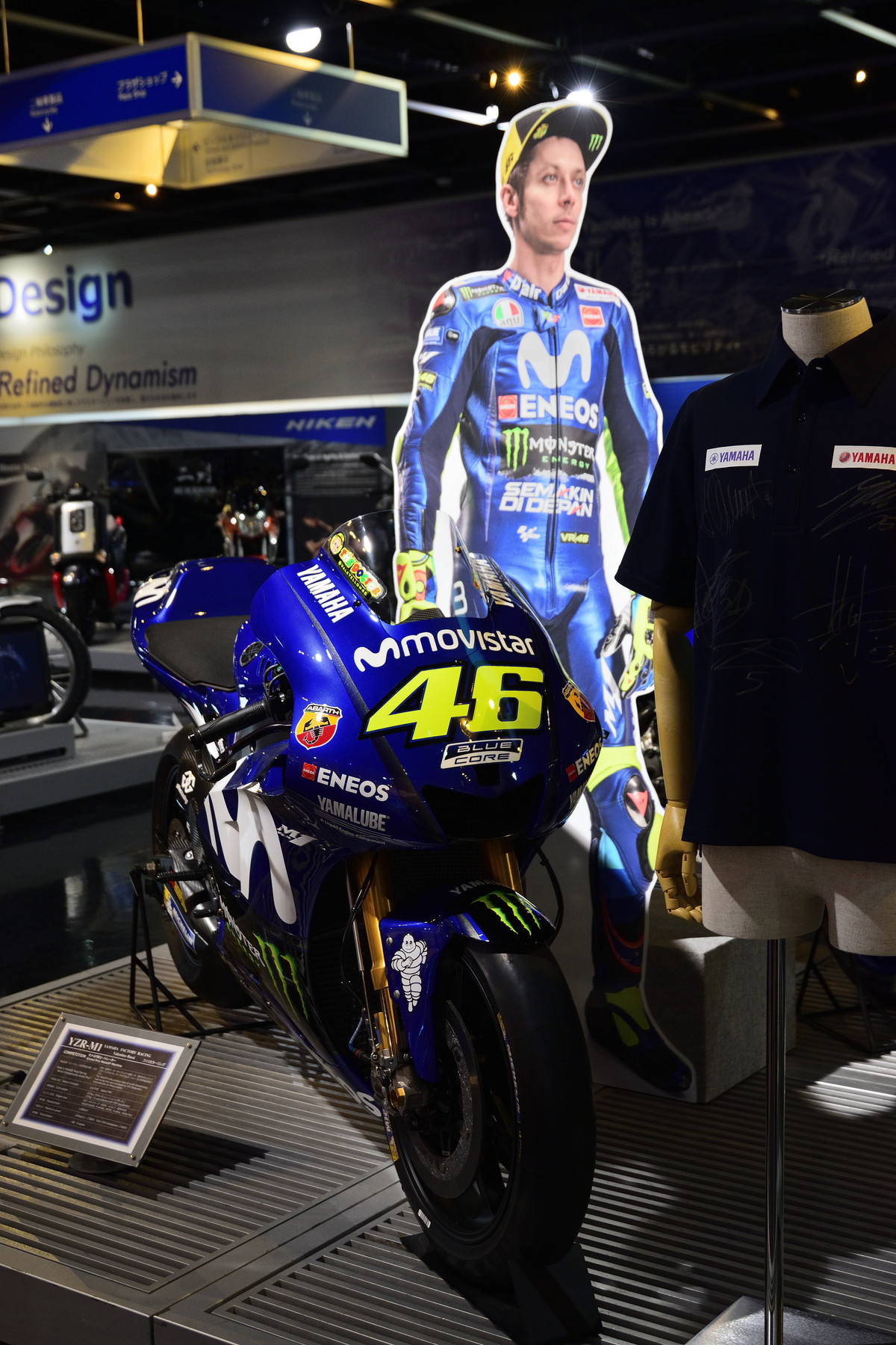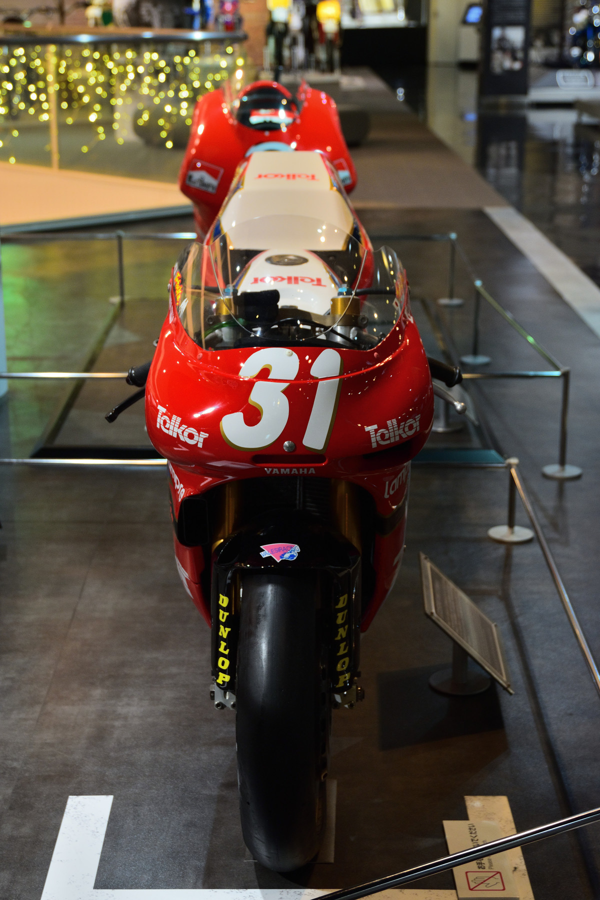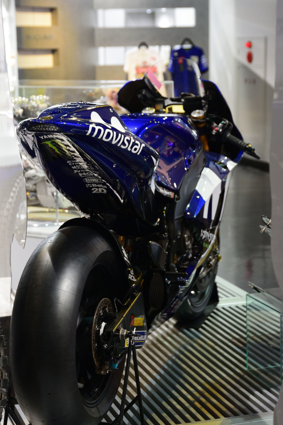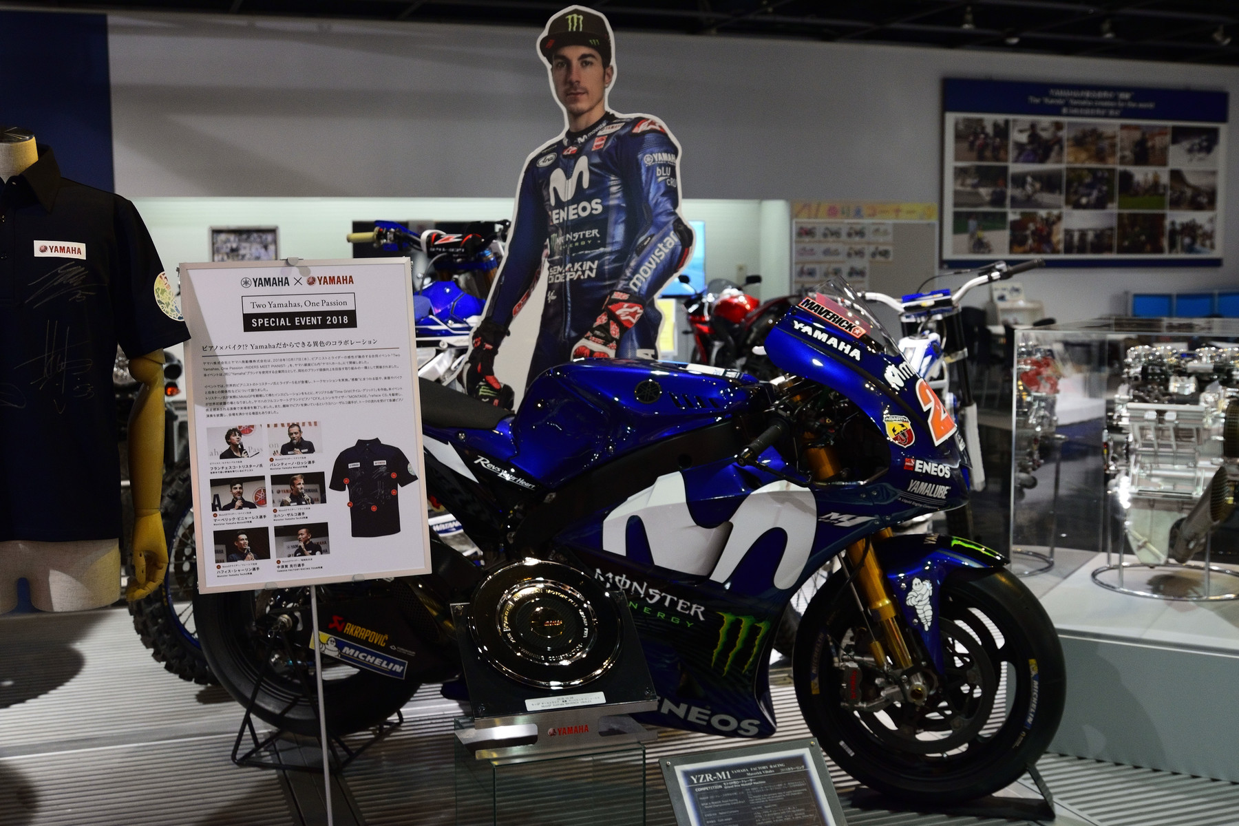1階にはMotoGPのYZR-M1が置いてありました。説明文を見ると「2018年カラーリング」と書いてありましたが、カラーリングだけ2018年にしたものなのでしょうか?157kg・240馬力以上だそうです。