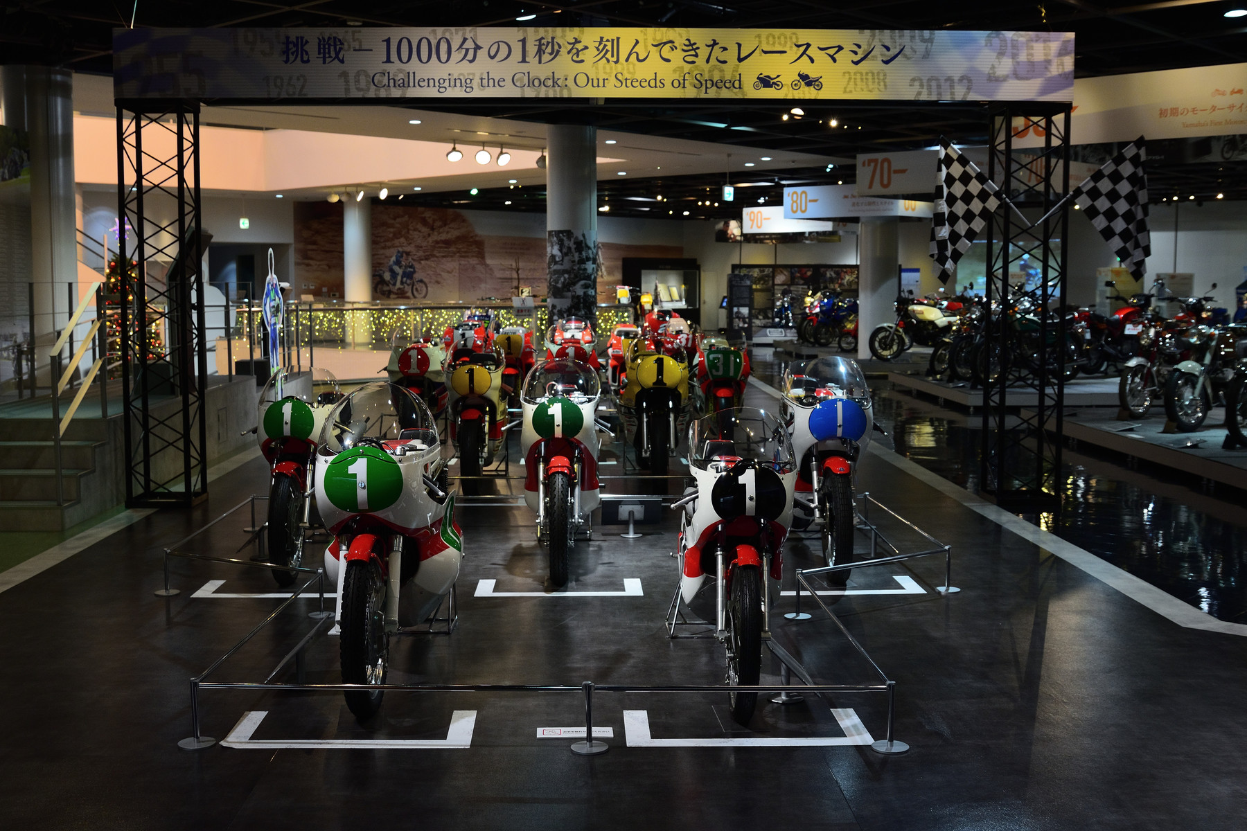 2階には「挑戦 1000分の1秒を刻んできたレースマシン」