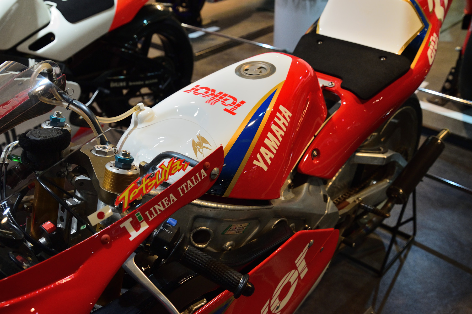 あの原田哲也が参戦初年度でWGPの250ccの世界チャンピオンを獲ったのがこのマシン。あの時代のWGPの情報源は今と違って深夜のテレビ東京の番組しかありませんでした。懐かしいなぁ・・