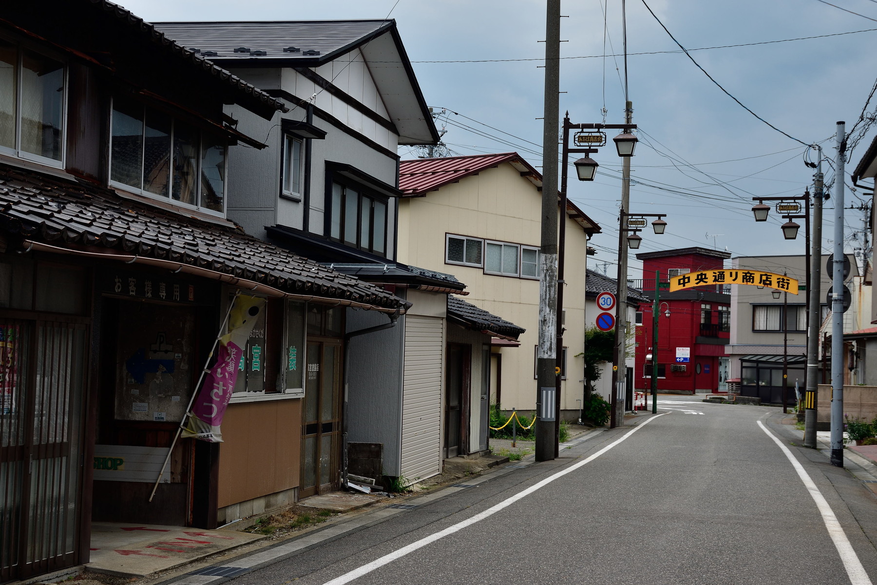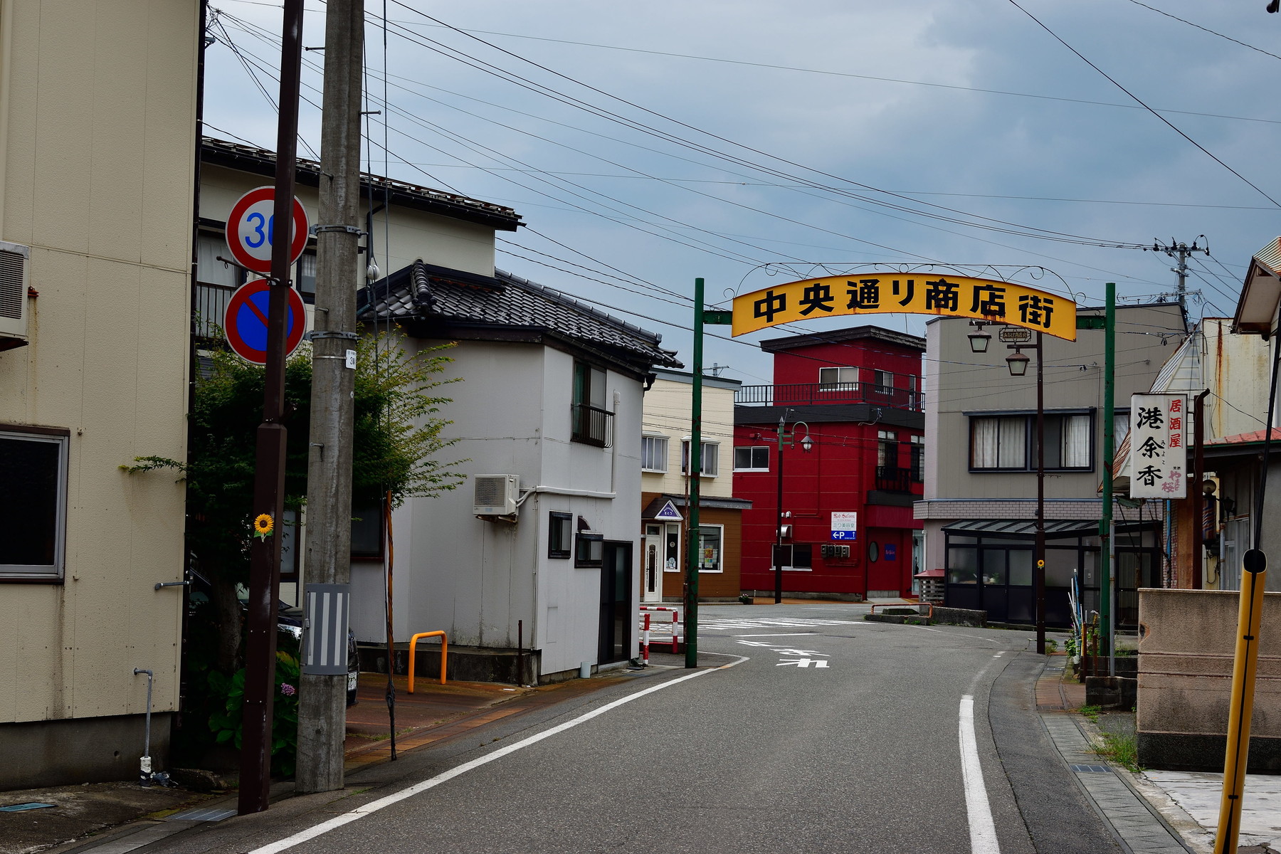 そして三叉路には「中央通り商店街」の看板がありました。