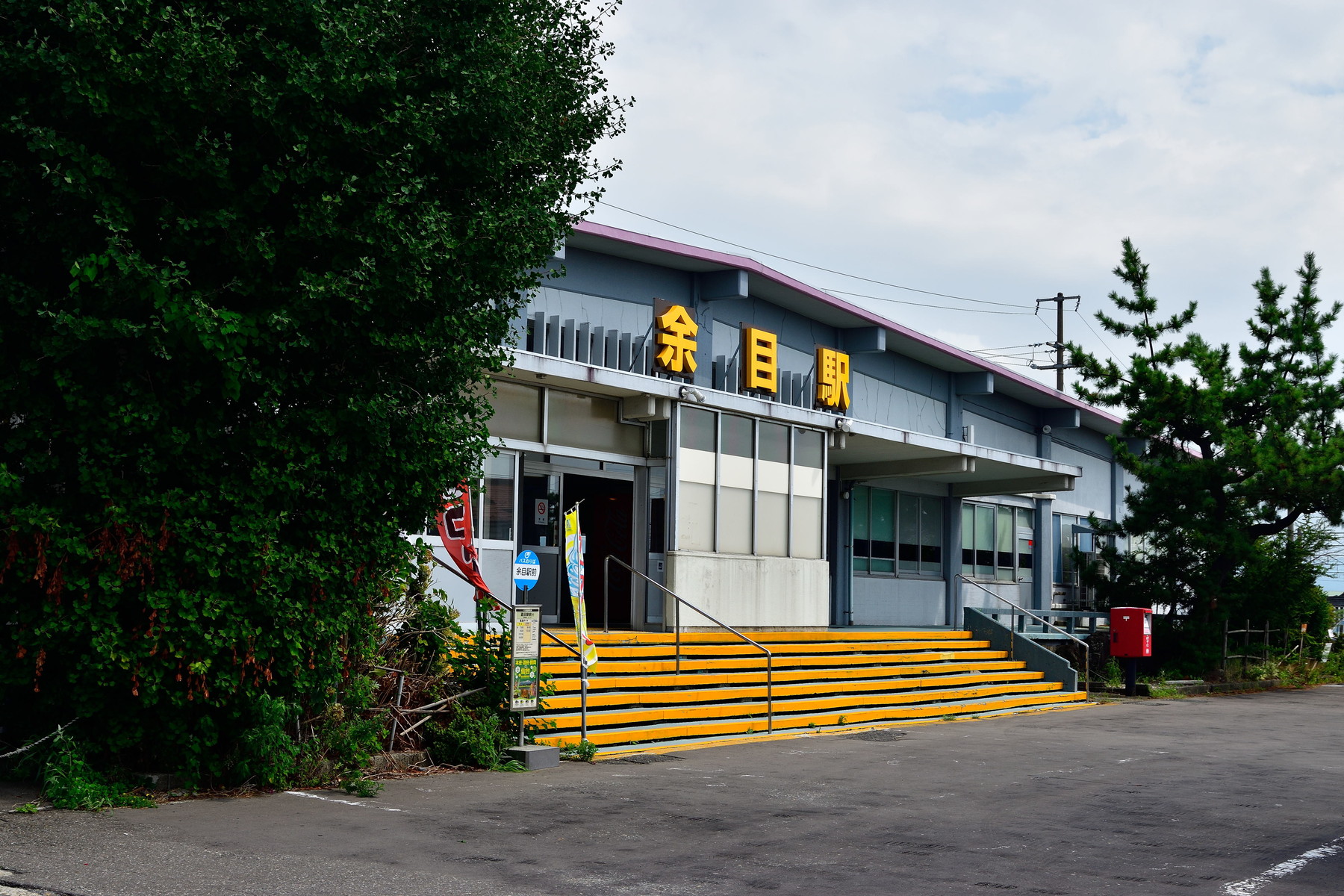 階段と駅名が鮮やかな黄色でした。これは雪降っても分かりやすい様にでしょうか?