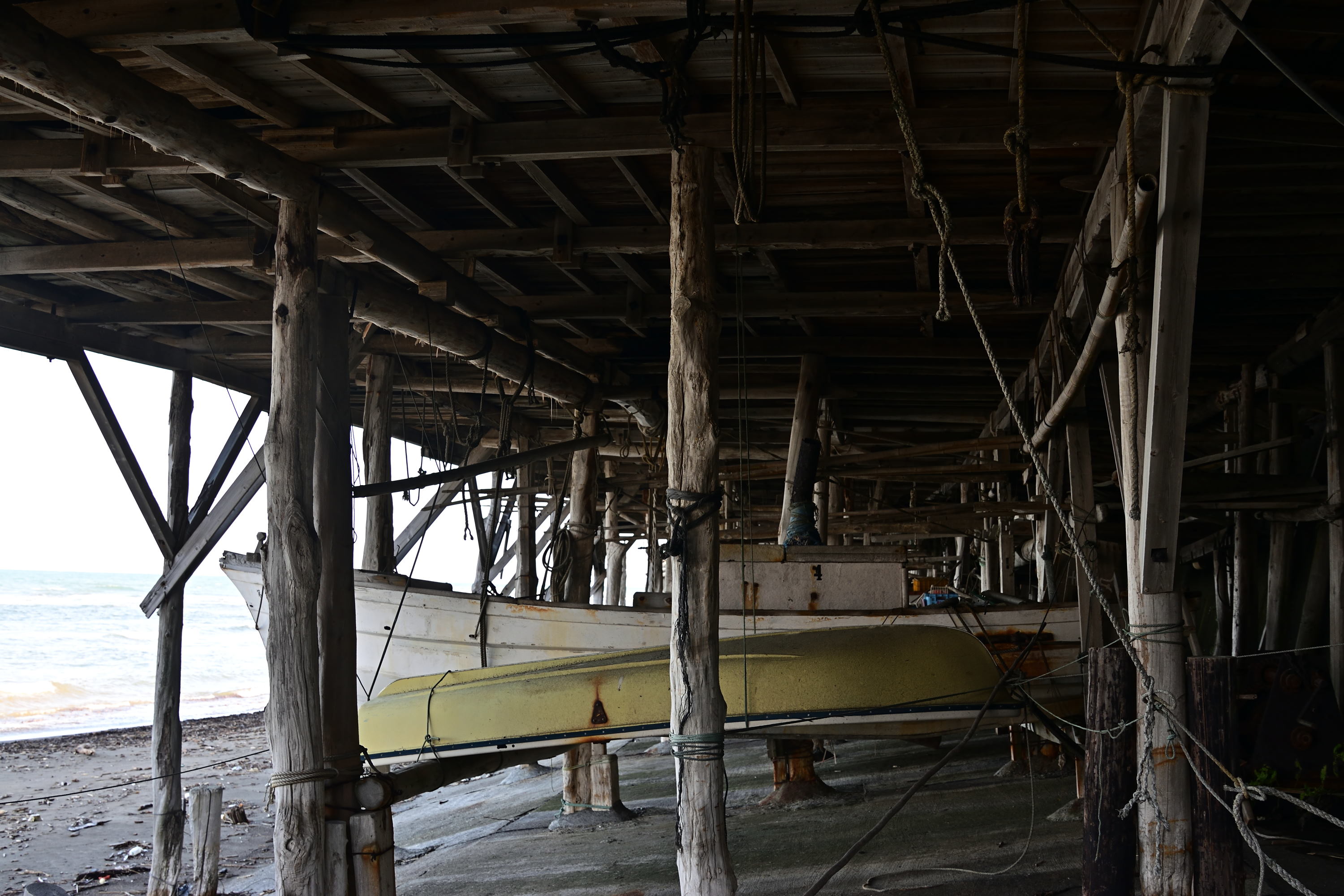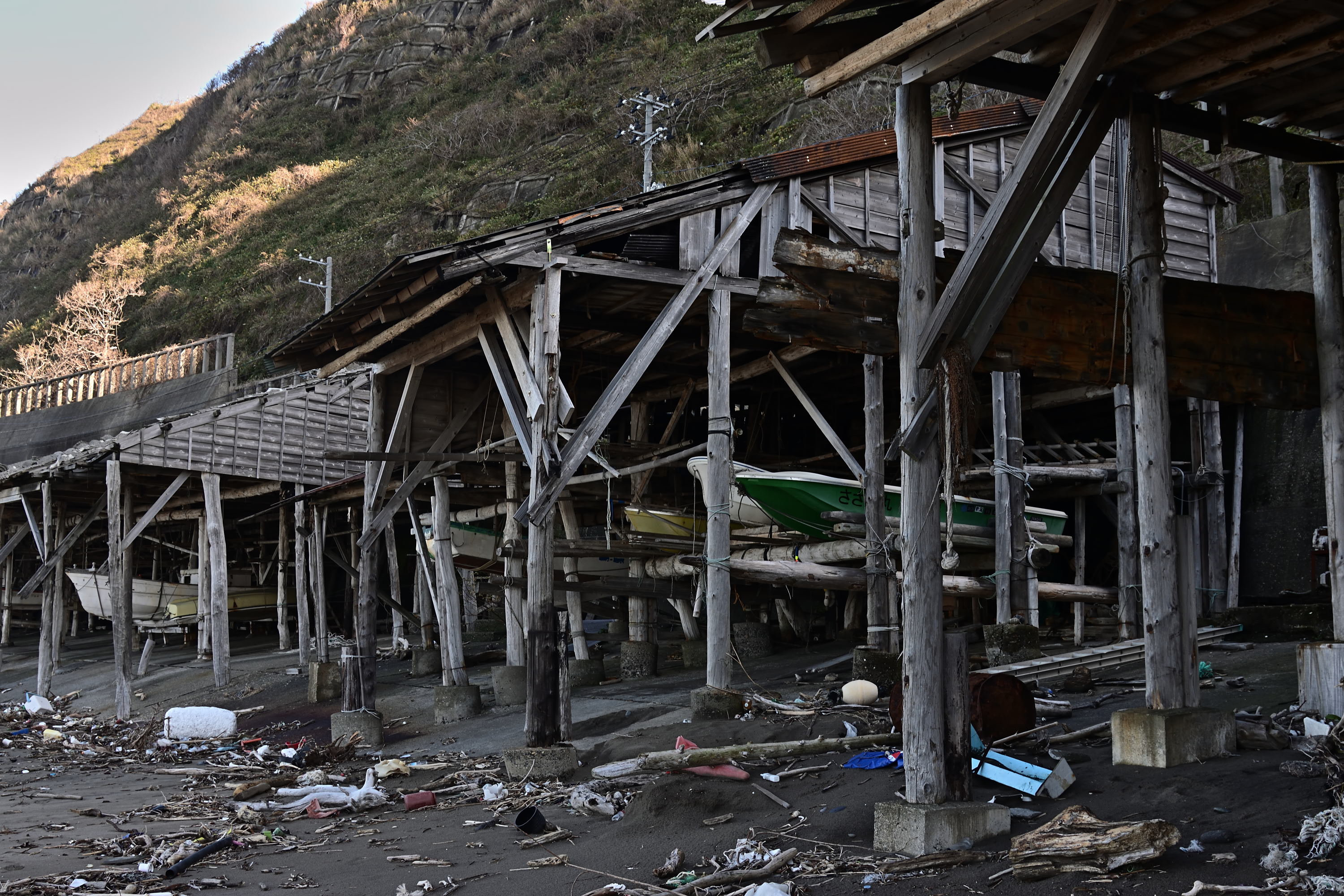 この100mくらいのエリアだけ海岸に斜めにコンクリ基礎をしっかり打ってあって、木材を突っ込む穴や土台まで用意されていました。