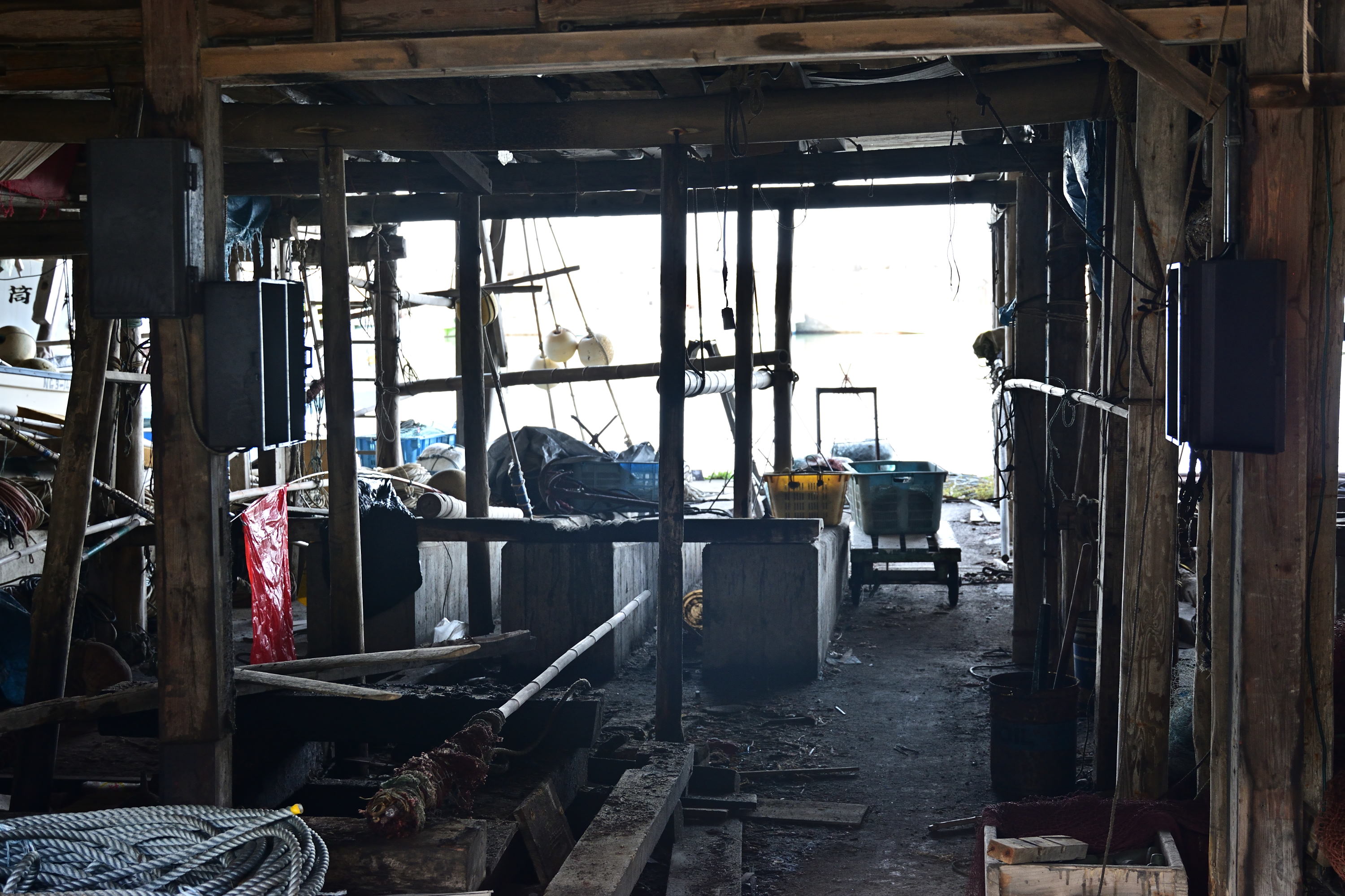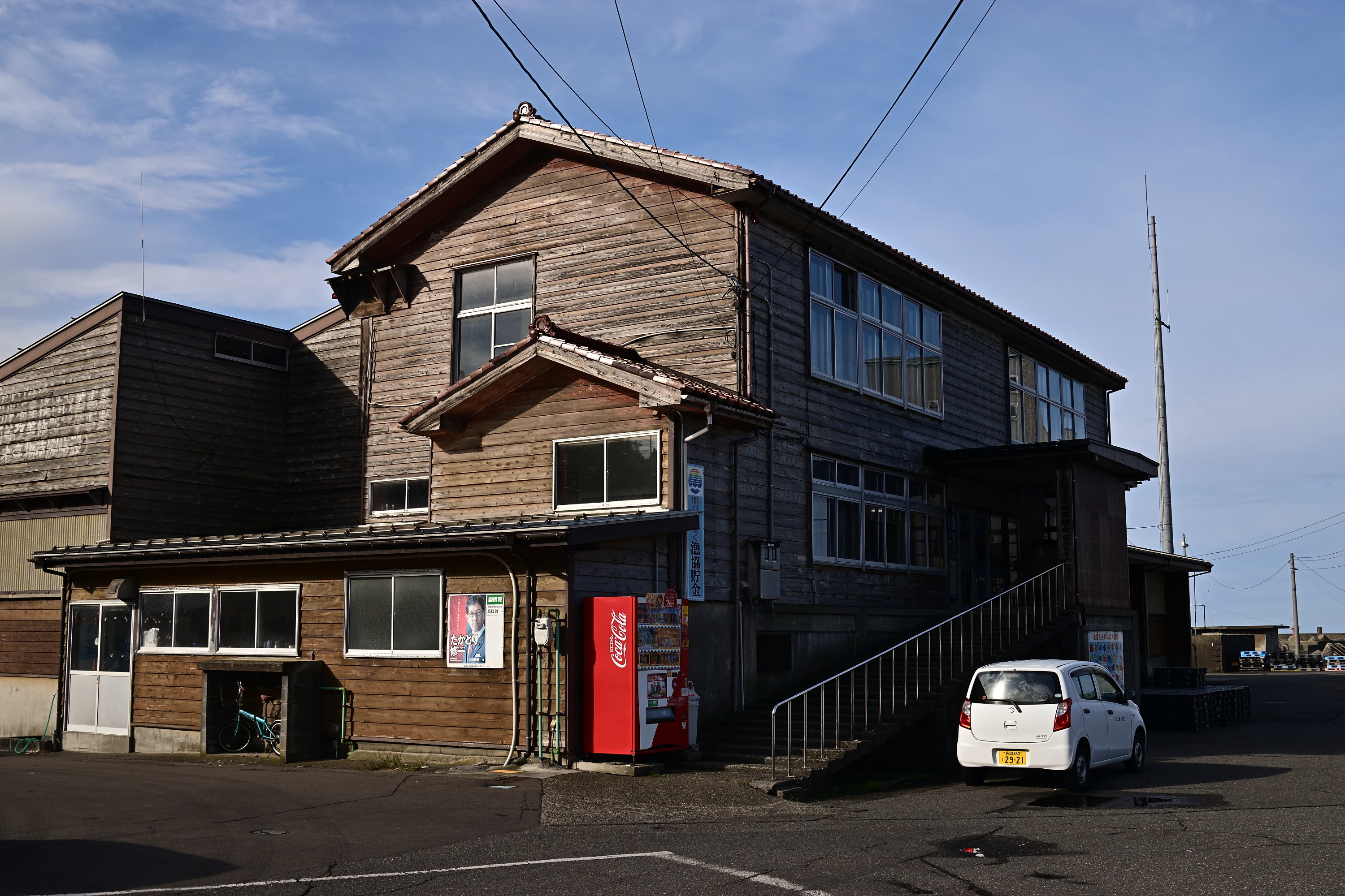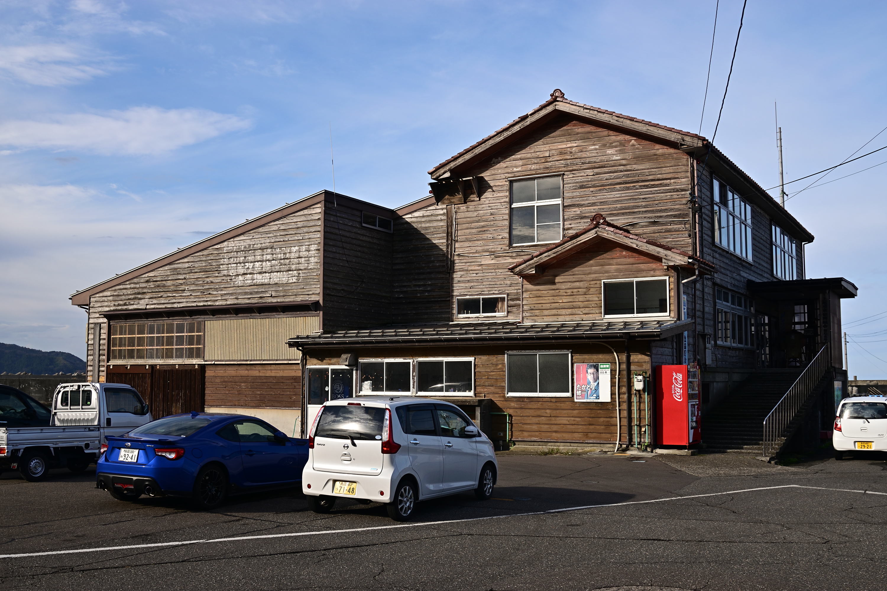 で・・・何となくこの辺りに廃墟化した船屋があるとは聞いていたので、とりあえず港の方に引き返すと漁業組合の建物にも味がありました。