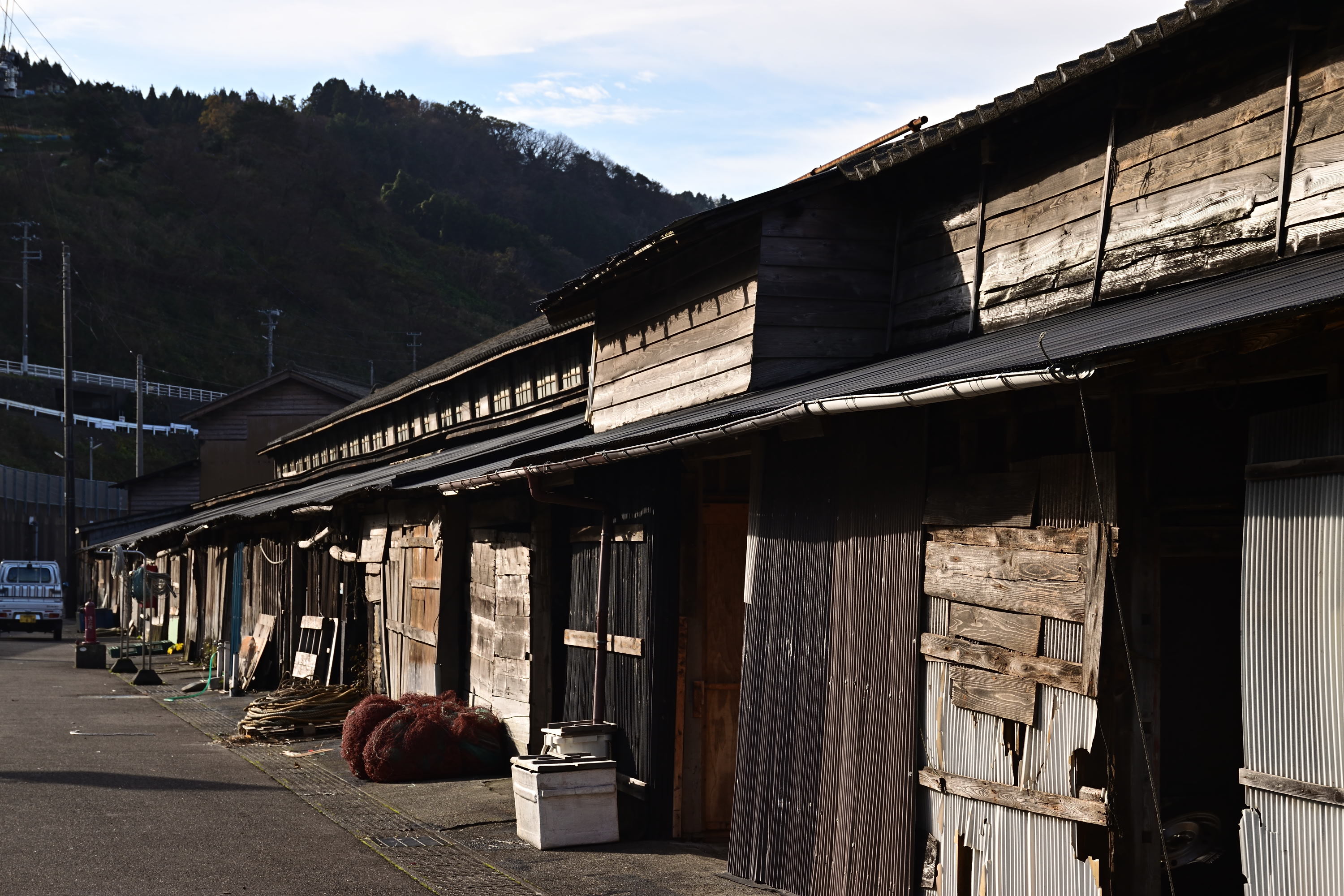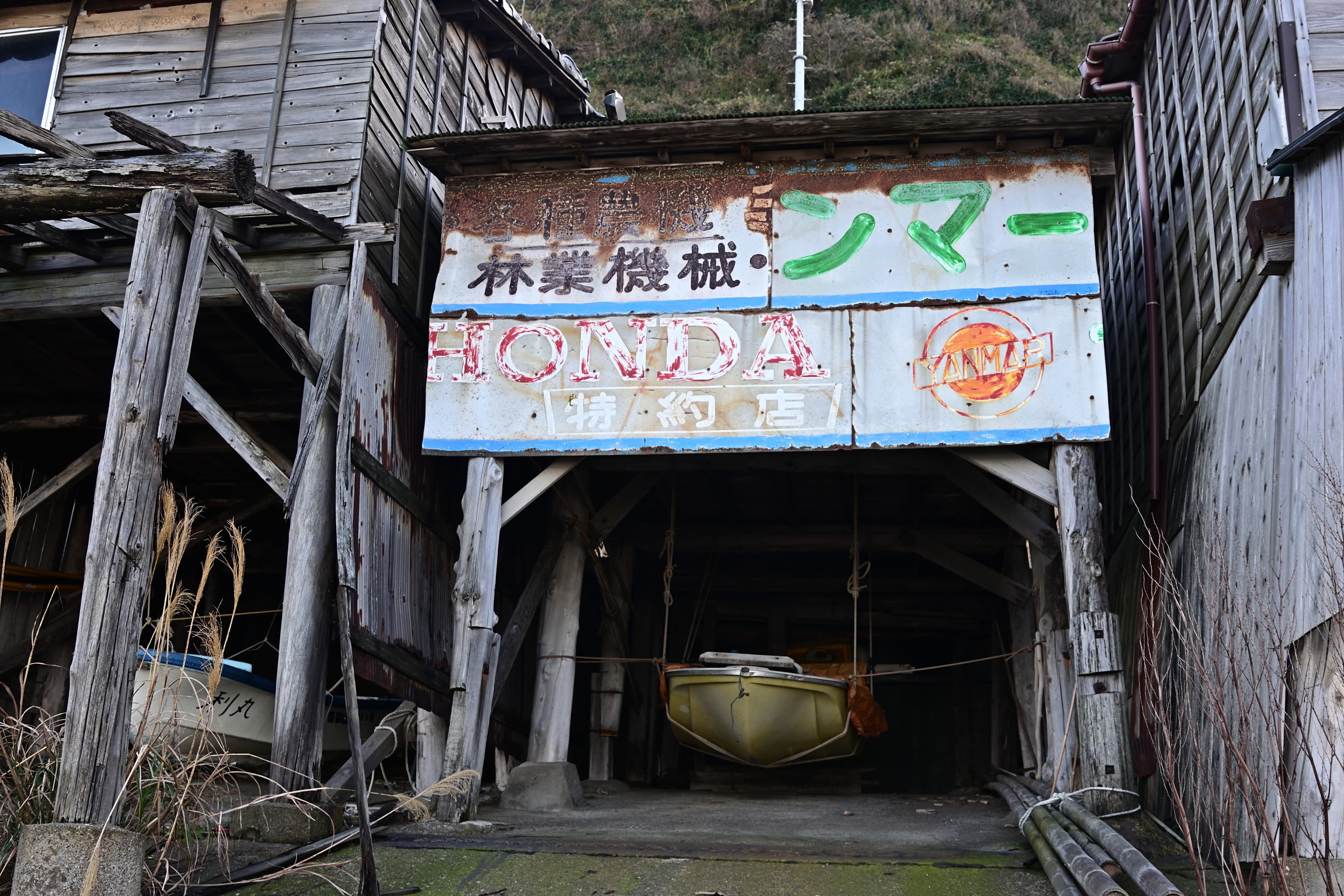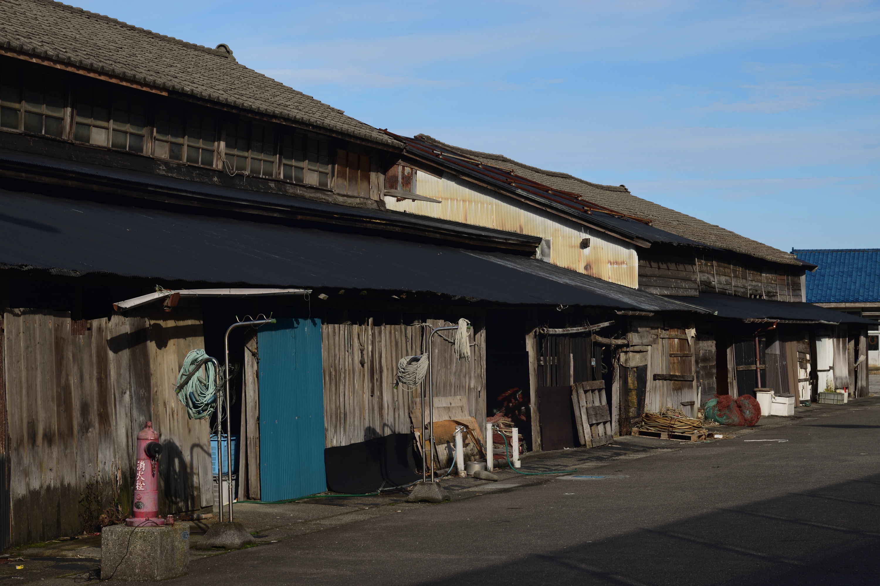 で・・・何となくこの辺りに廃墟化した船屋があるとは聞いていたので、とりあえず港の方に引き返すと漁業組合の建物にも味がありました。