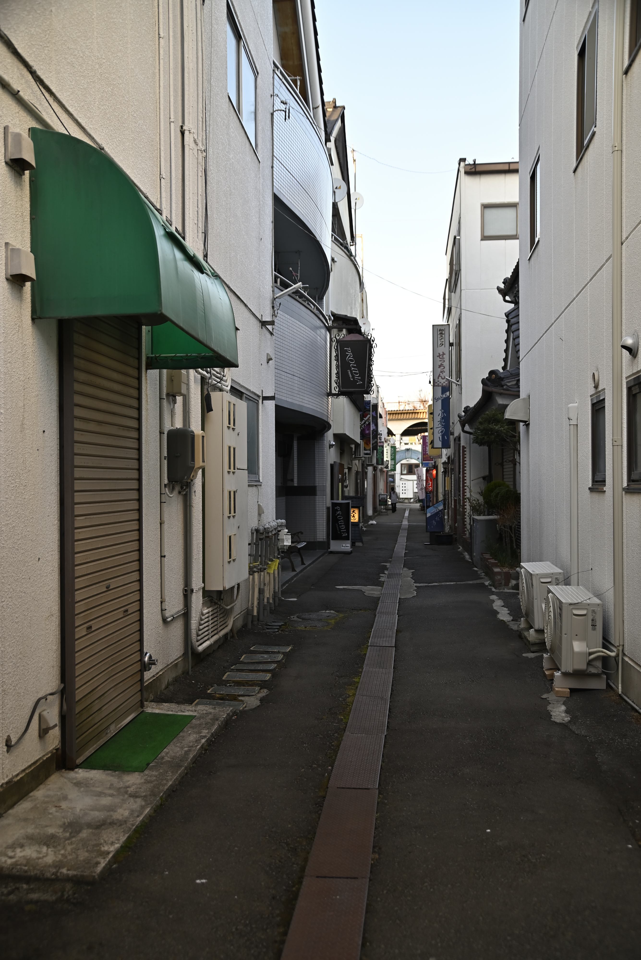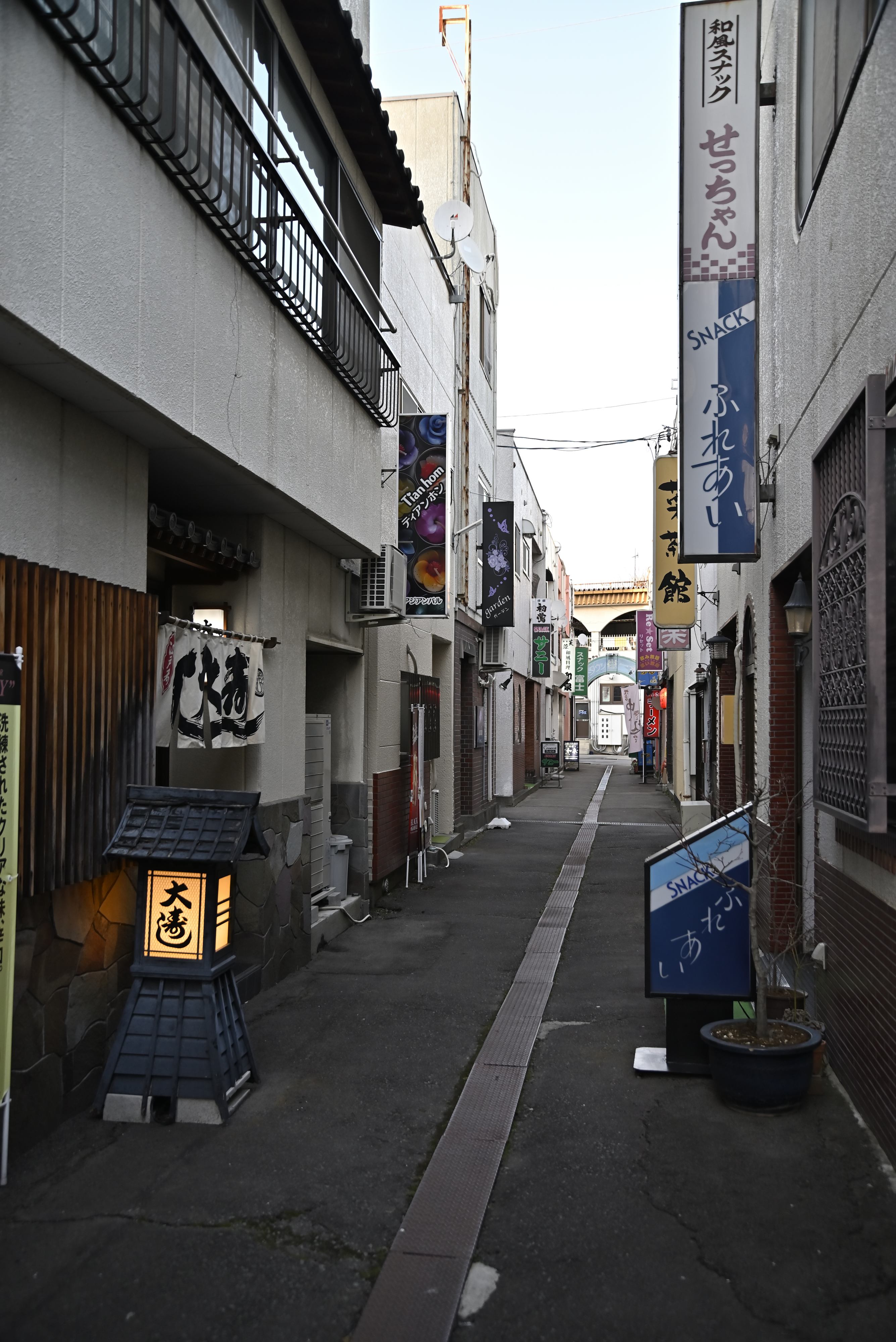 左側は千曲川の横にある成田公園です。ここまで駅から500m程、その間に商店街とこの飲み屋街がある訳です。