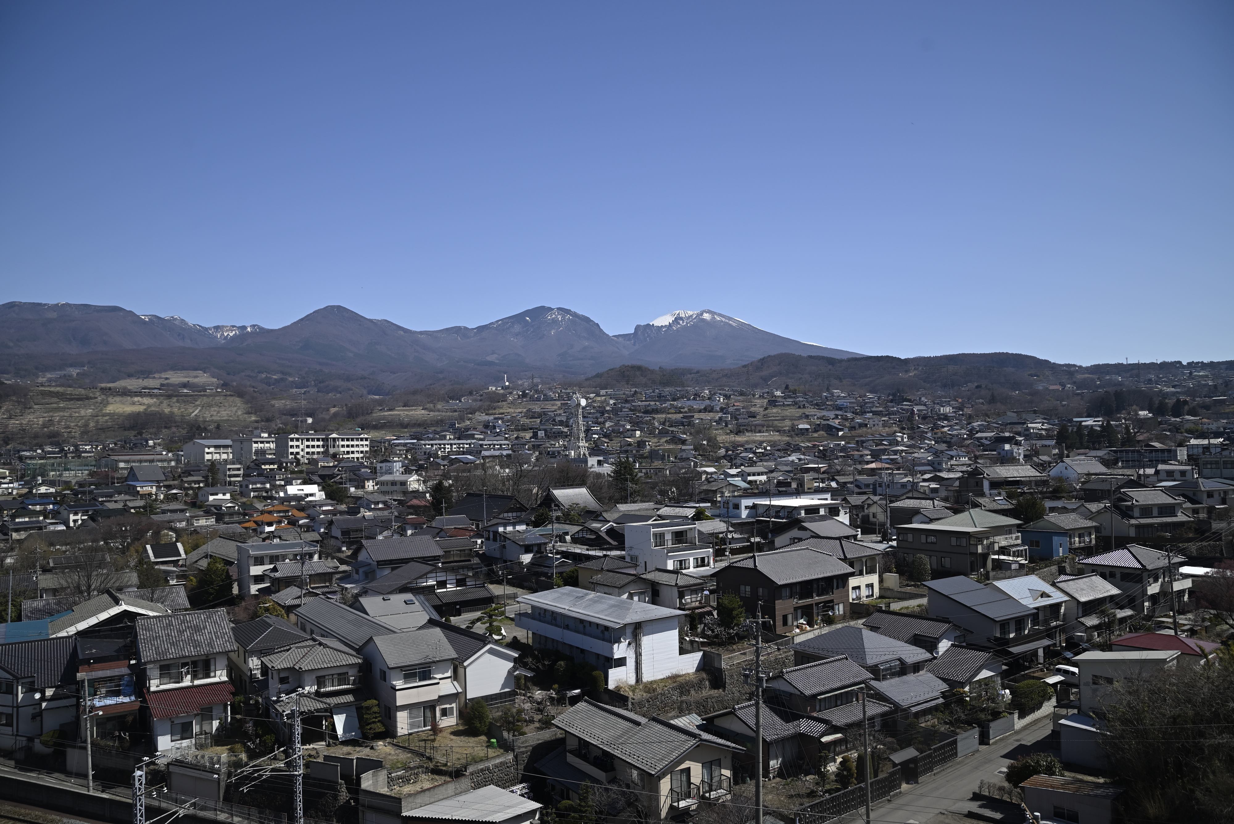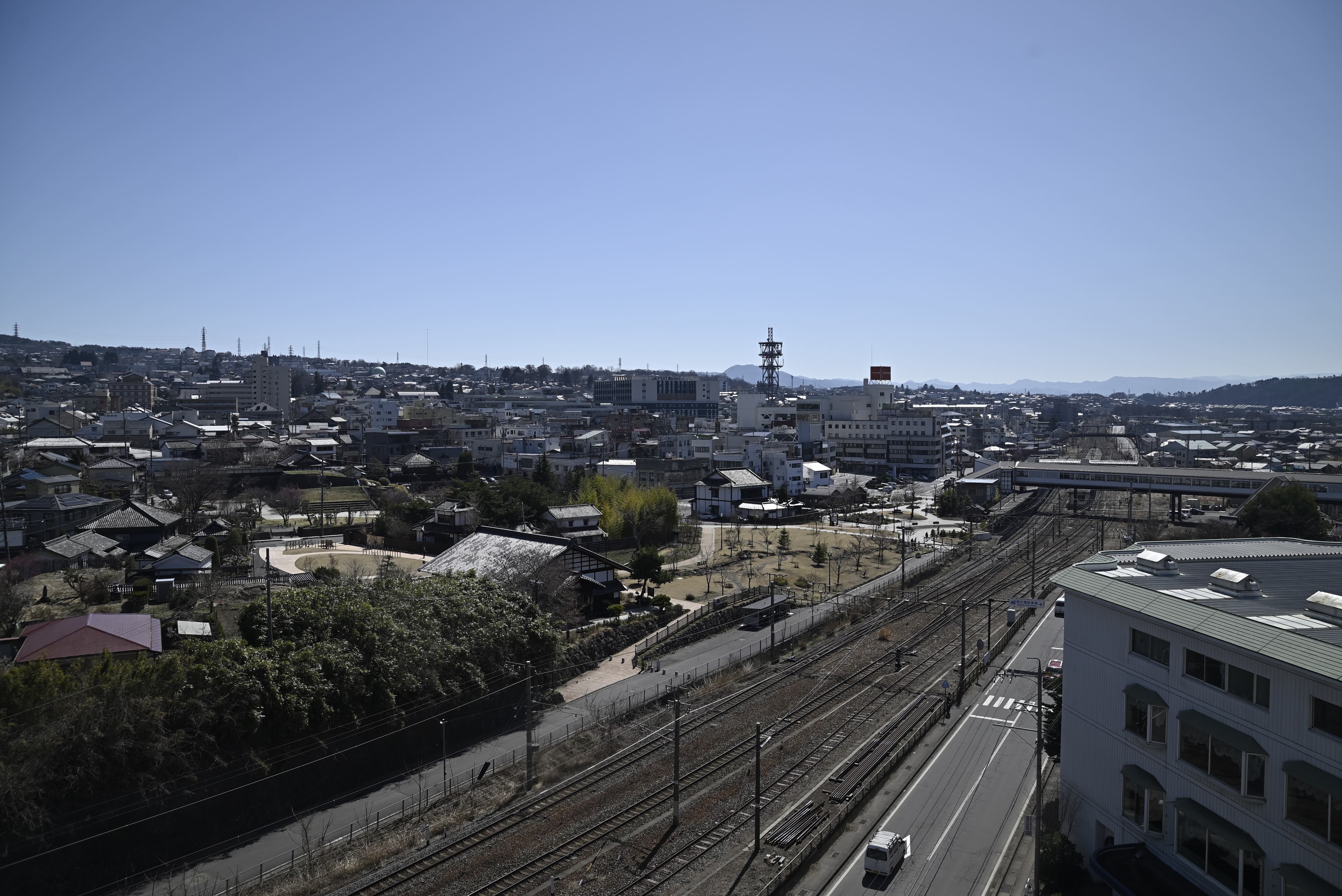 駅の方を見てもそんなに高い建物は無いですね。歩いていた旧北国街道は写真でいうと左の方なので、駅に向かってなだらかに下っていることが分かります。