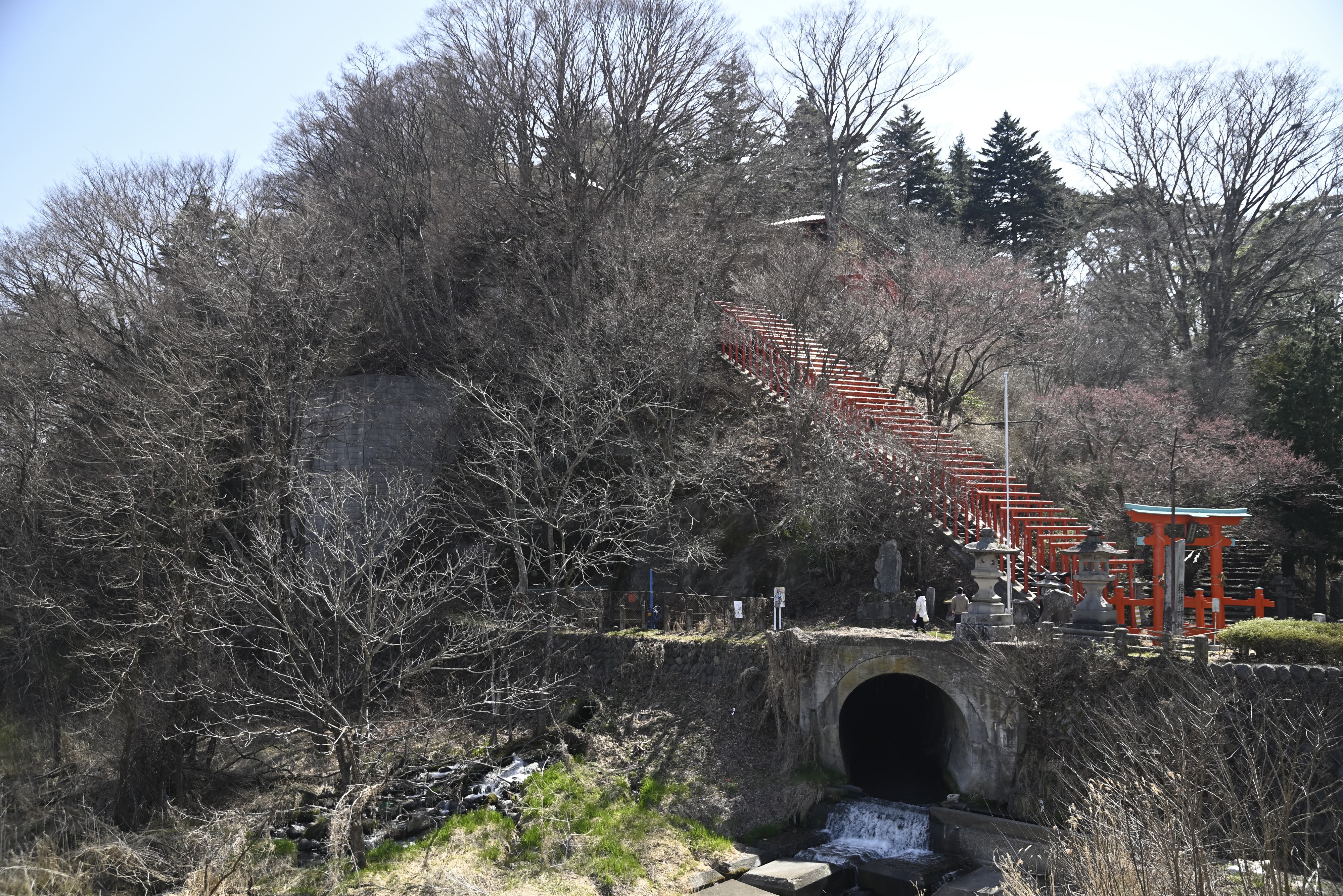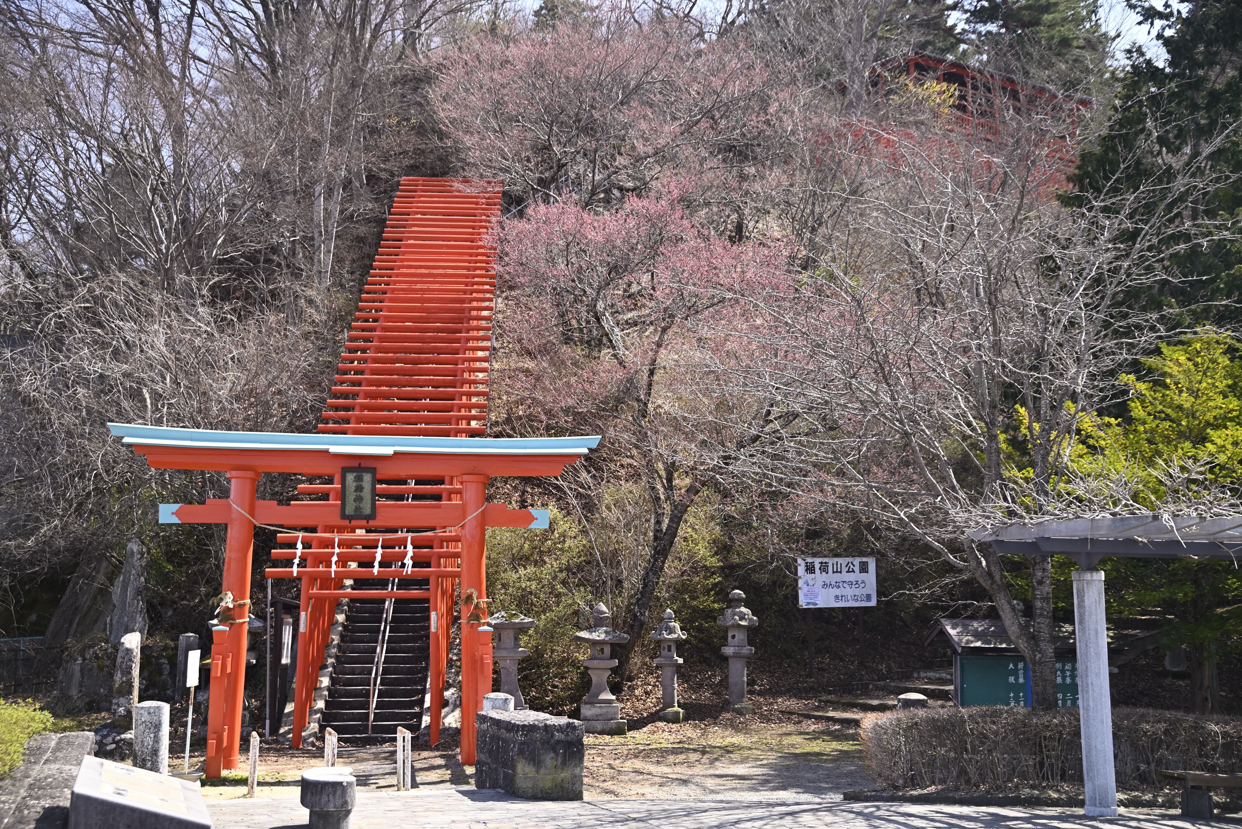橋を渡った小高い山にあった稲荷神社の鳥居です。桜の季節は綺麗な事でしょう。