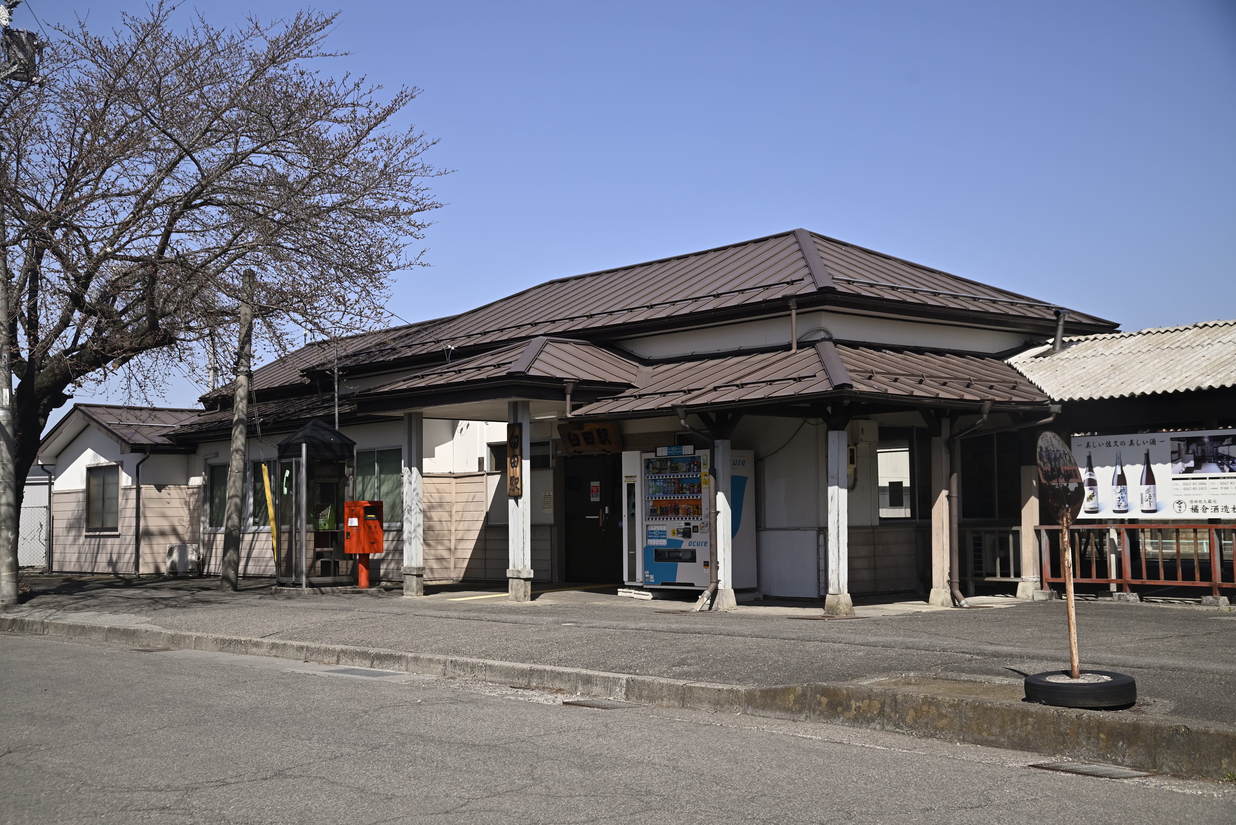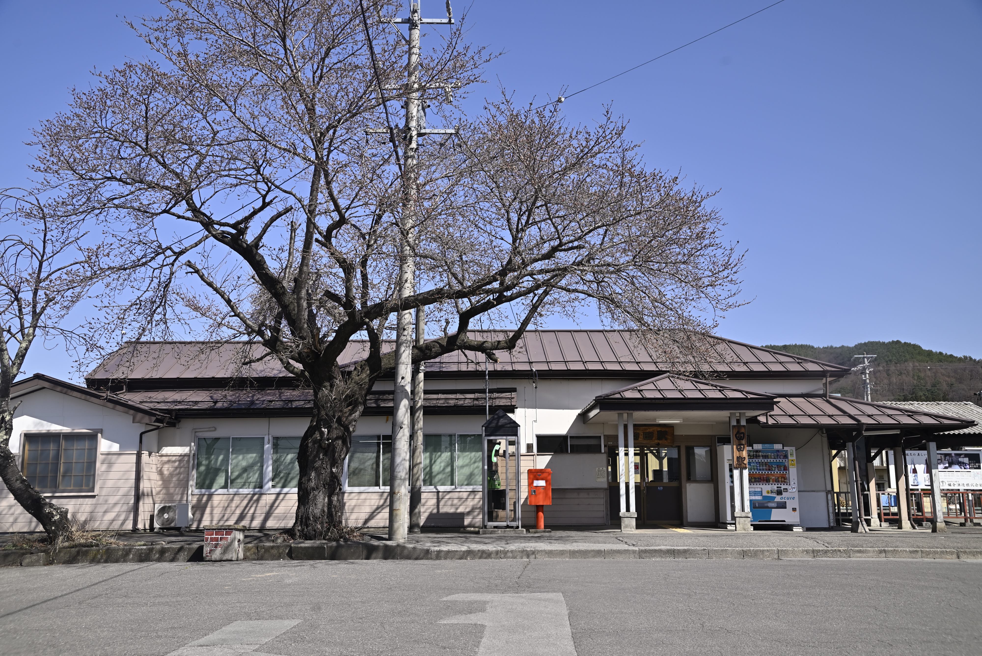 良い駅舎でした。駅舎の前にあるのは桜の木かな。