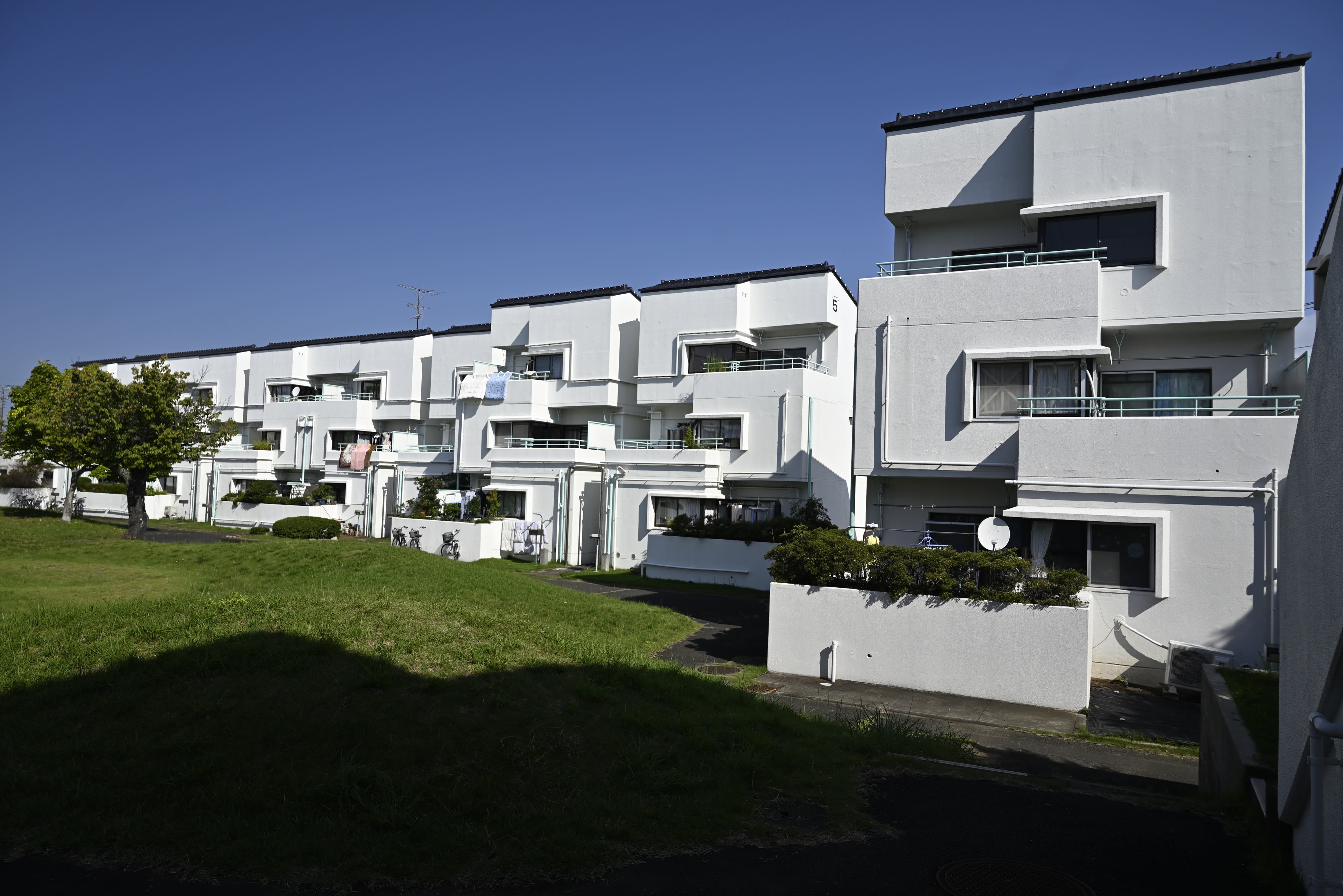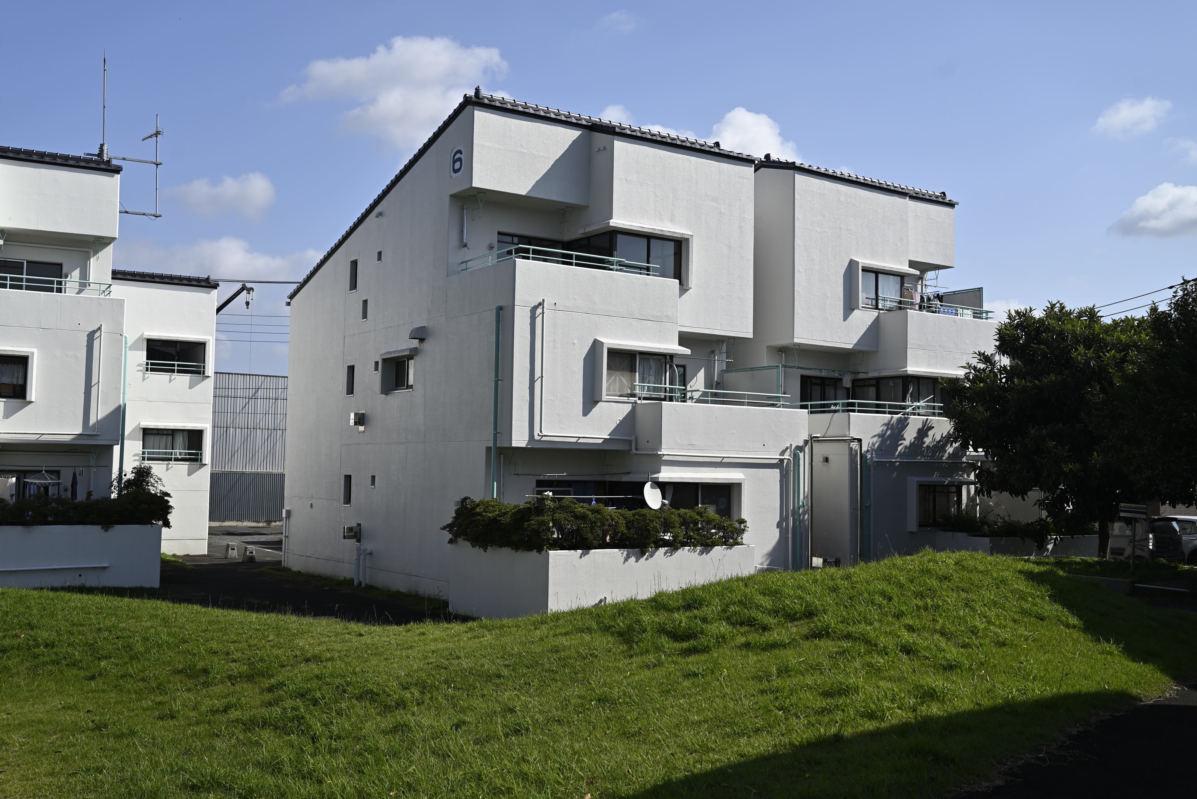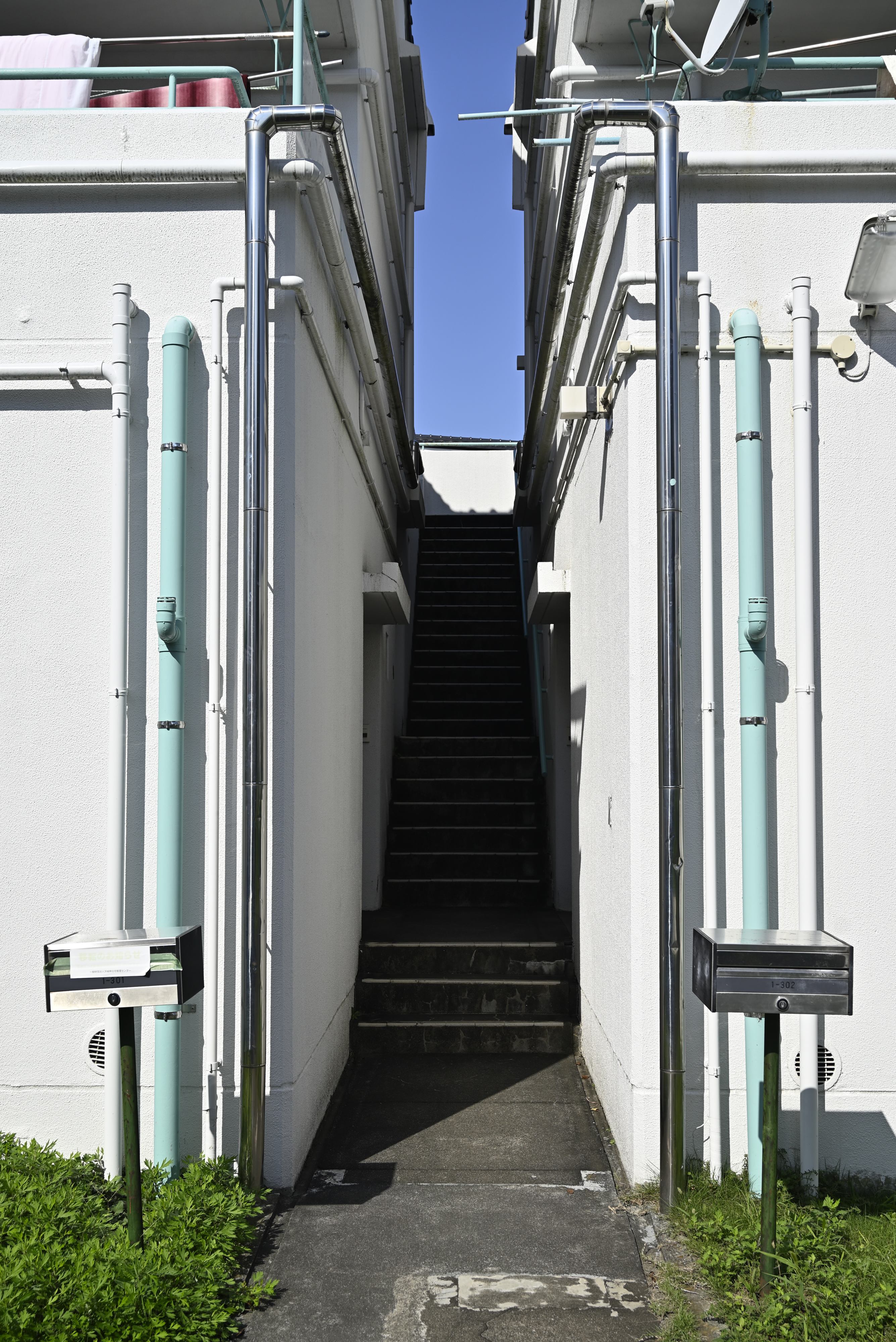 そしてこちらは茨城県営六番池アパートです。茨城県住宅管理センターのWEBによると、昭和49年竣工の管理開始は翌昭和50年ということでちょうど50年ですね。敷地の端っこに給水塔がありました。
