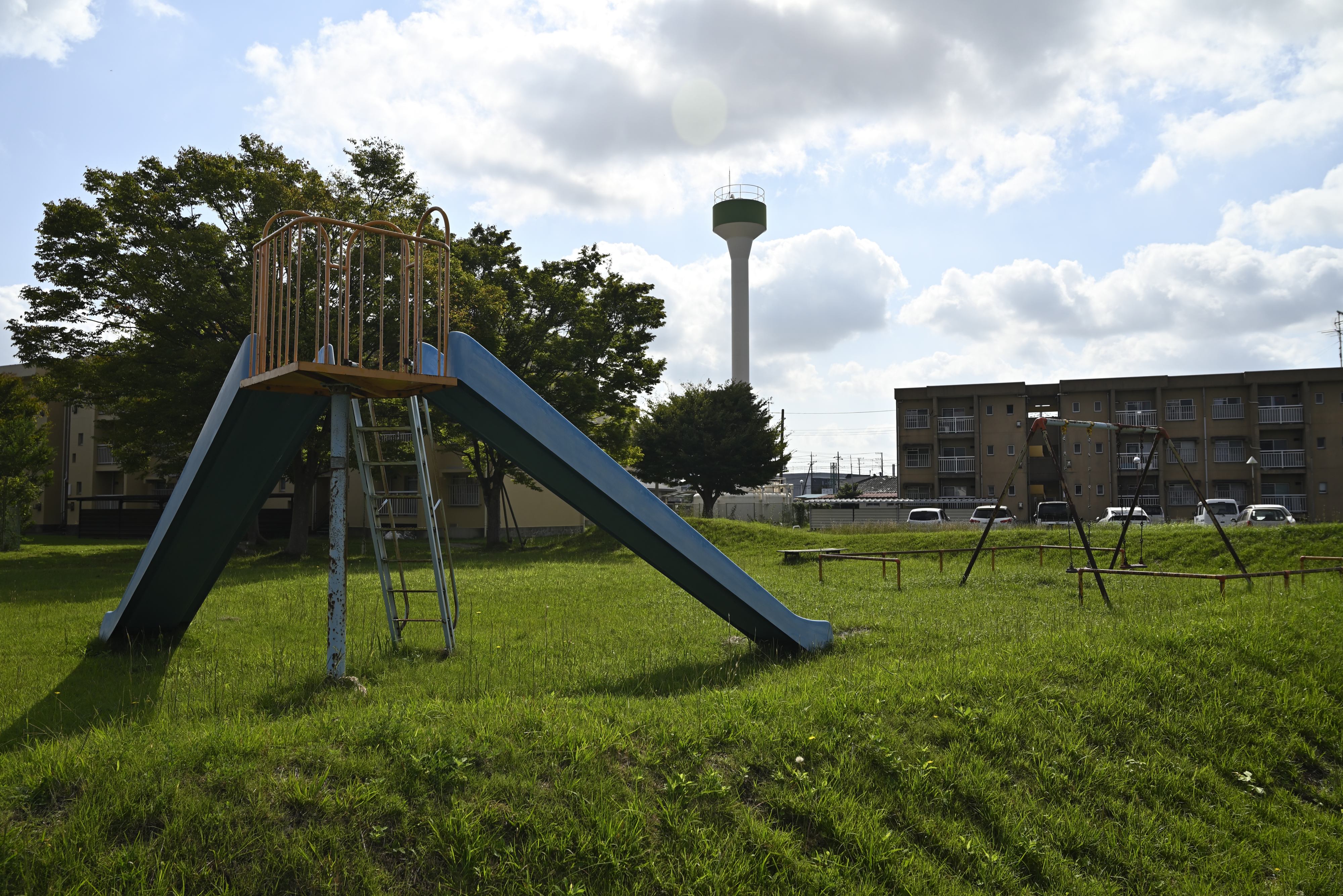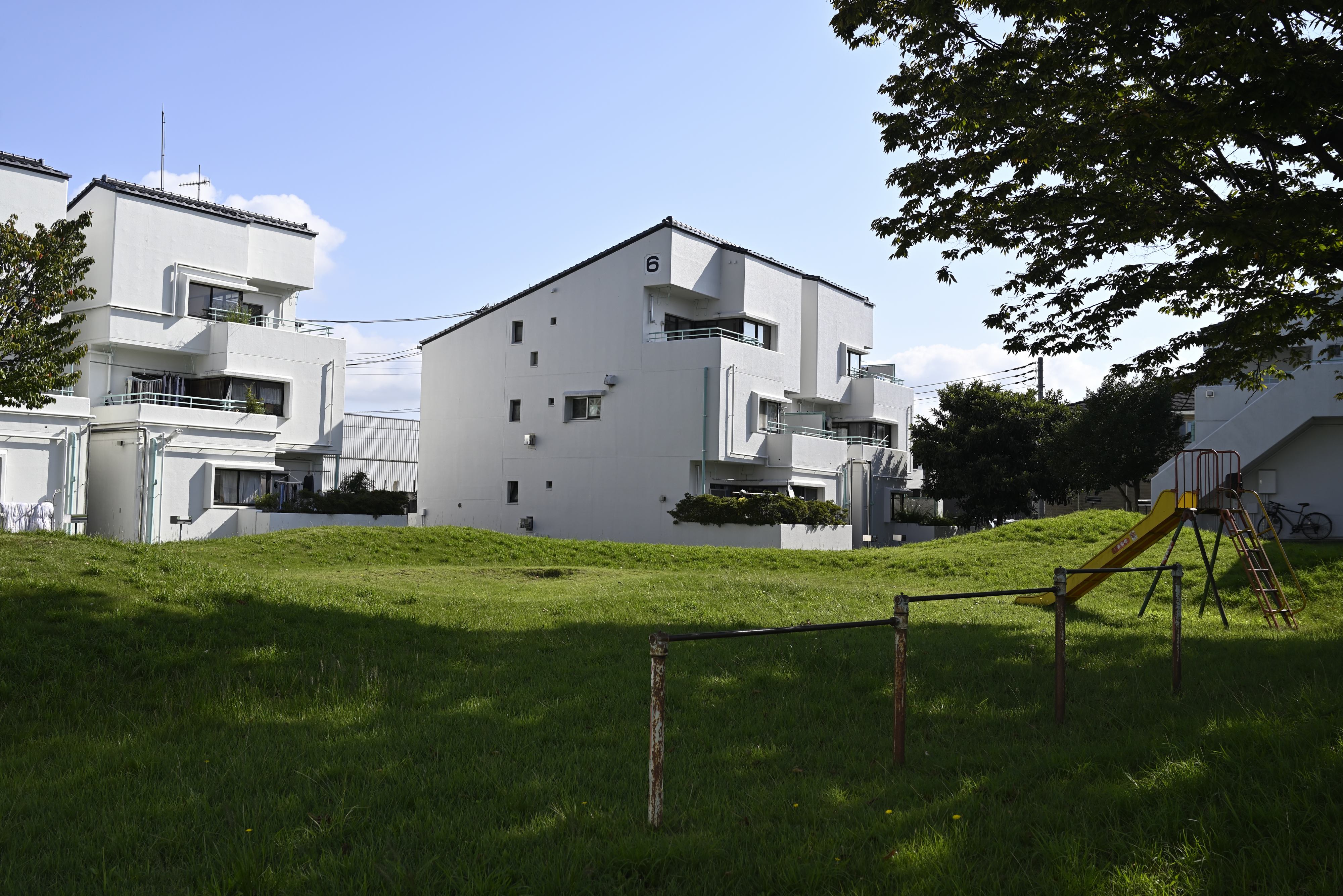 団地の真ん中に小さな丘があってそれをぐるっと囲むように住宅棟がありました。子供がたくさん居た頃は相当賑やかだったことでしょう。